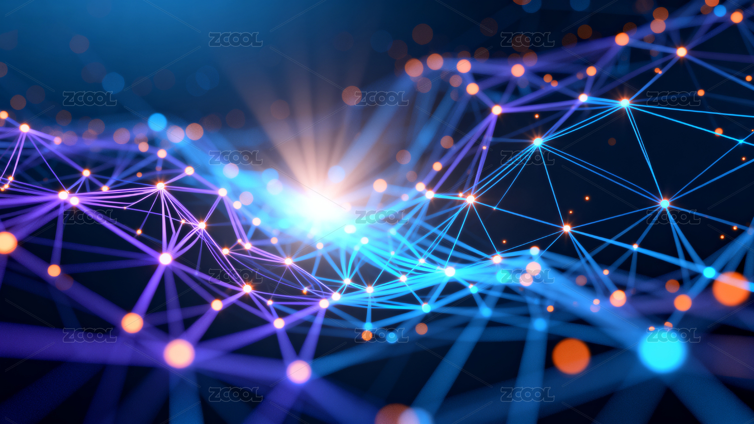 几何,抽象,蓝色,科技,光线,连接,网络,数据,节点,未来