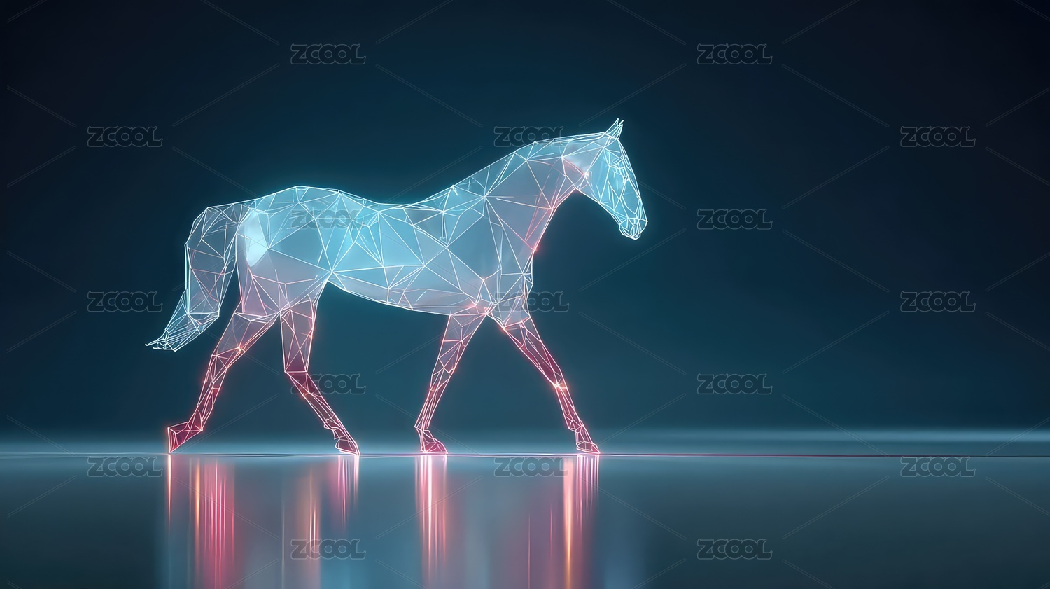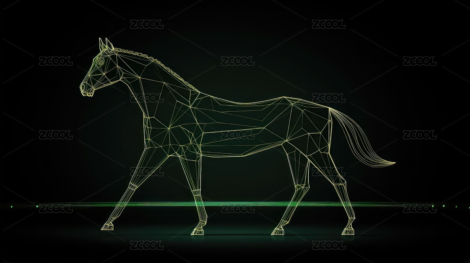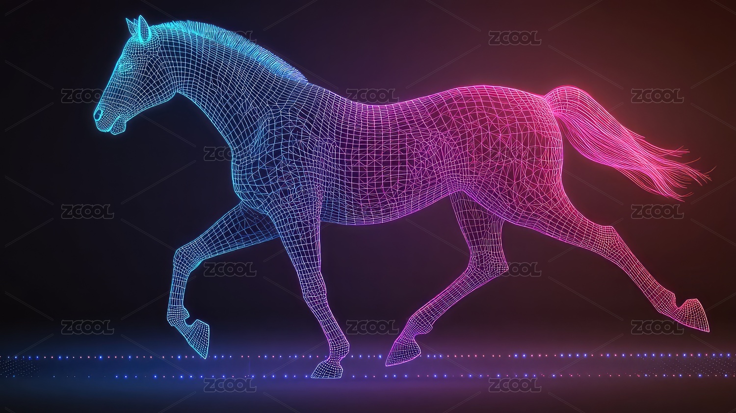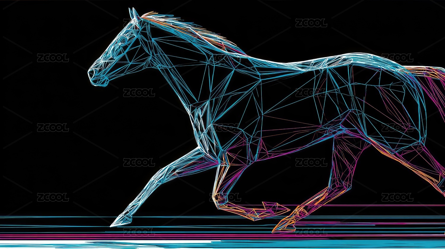 科技,艺术,抽象,动物,轮廓,光线,霓虹,马,线框,感光