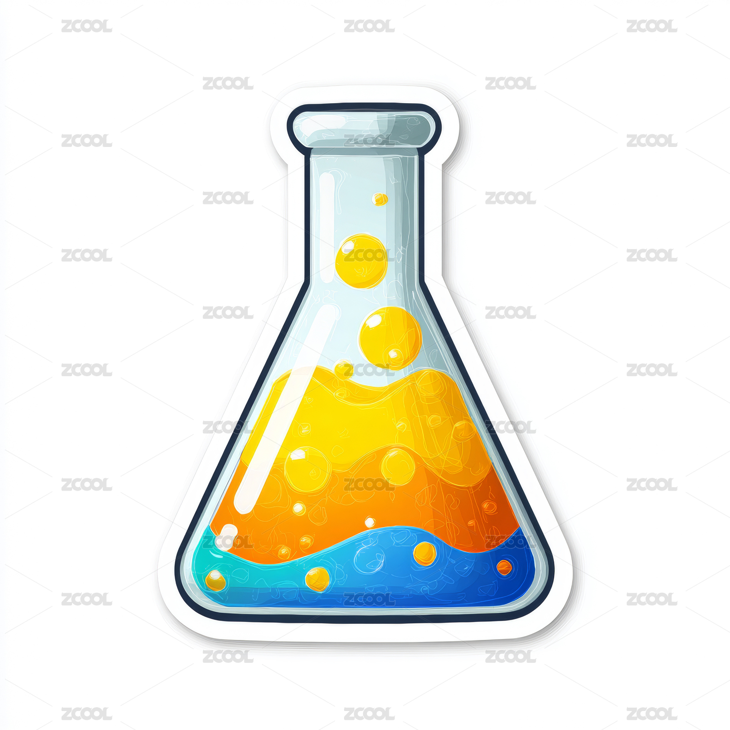图标,贴纸,卡通,化学,科学,实验,烧瓶,液体,气泡,学习