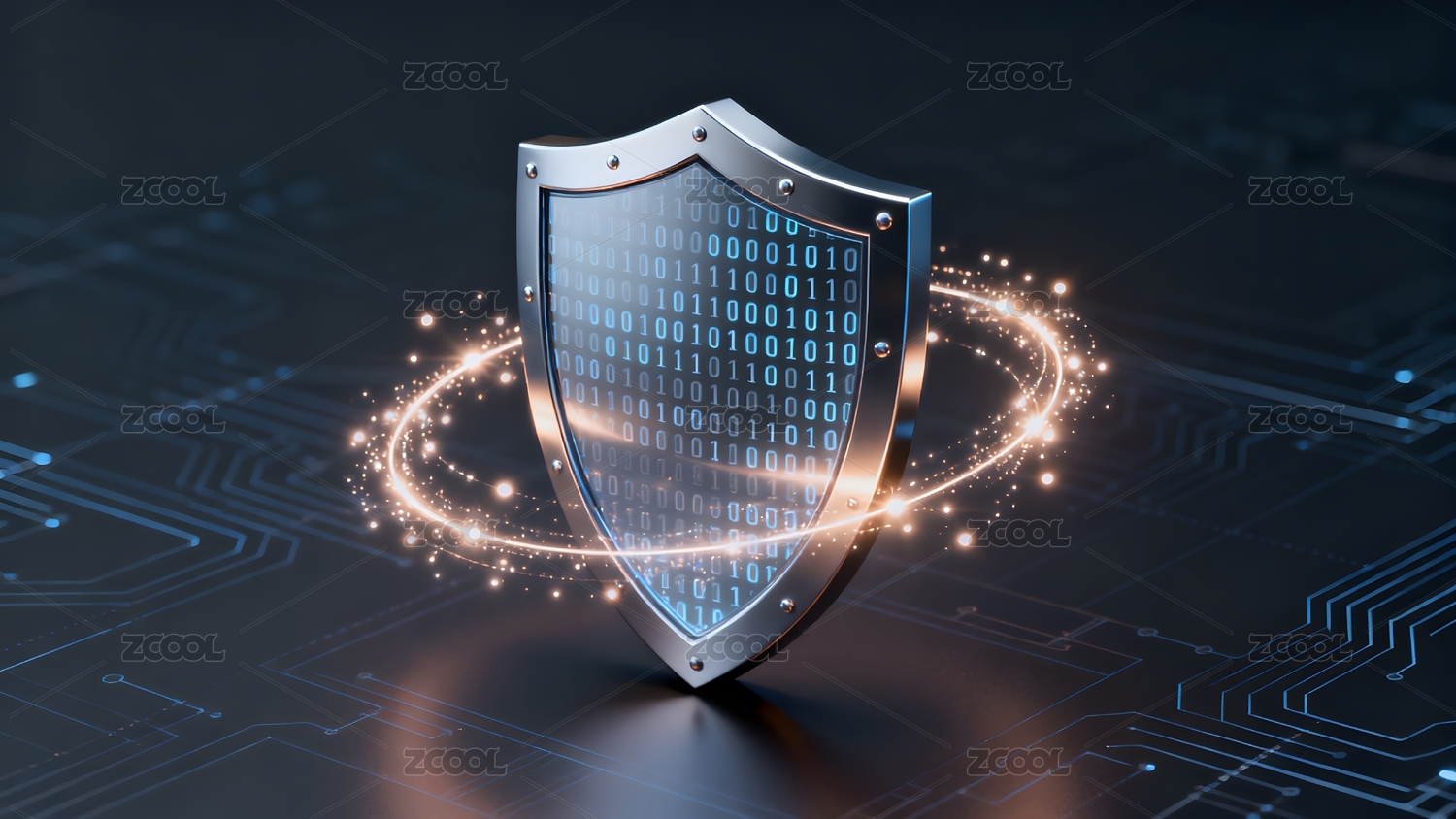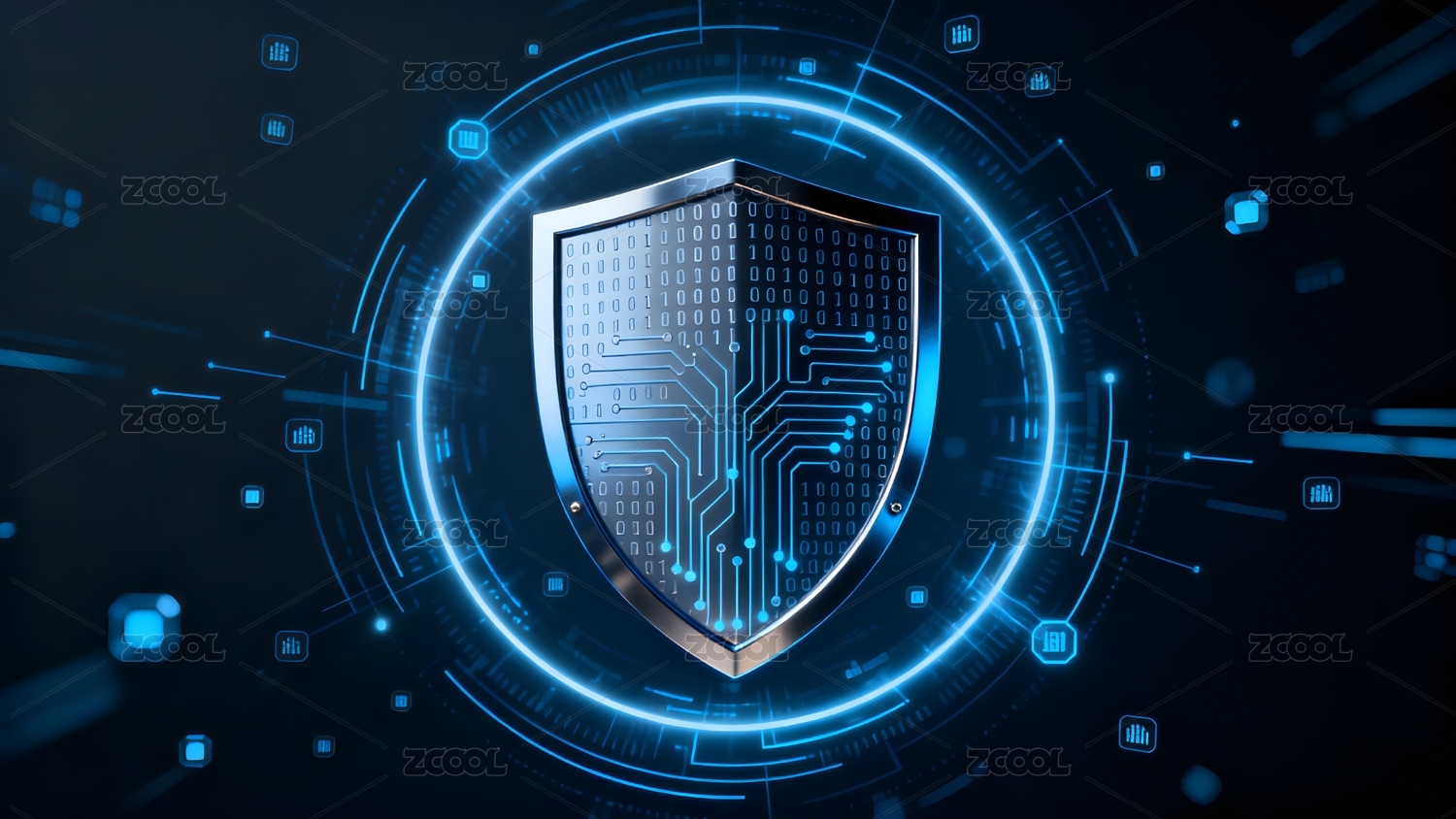 科技感盾牌与二进制代码图案