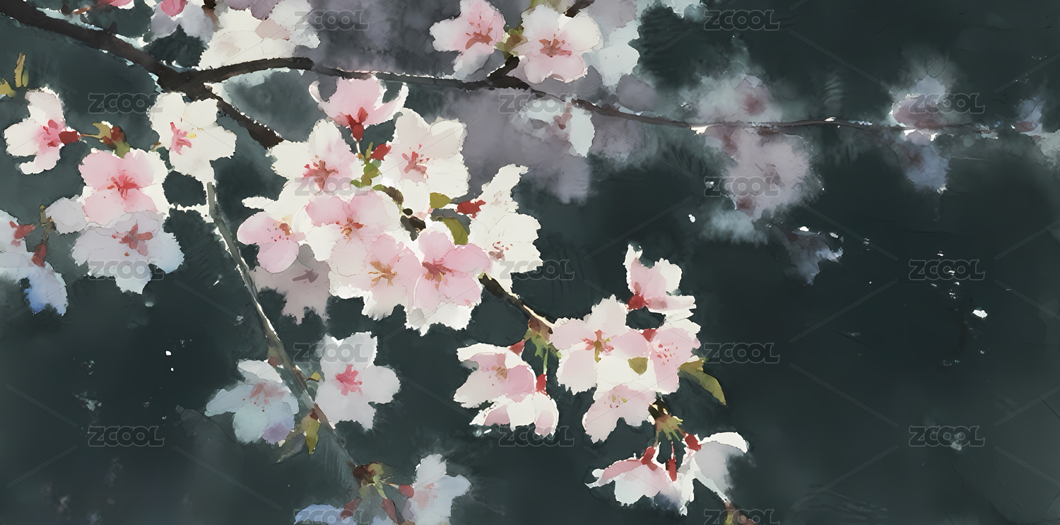 背景,绽放,自然,清新,绿叶,花朵,艺术,绘画,柔美,细腻