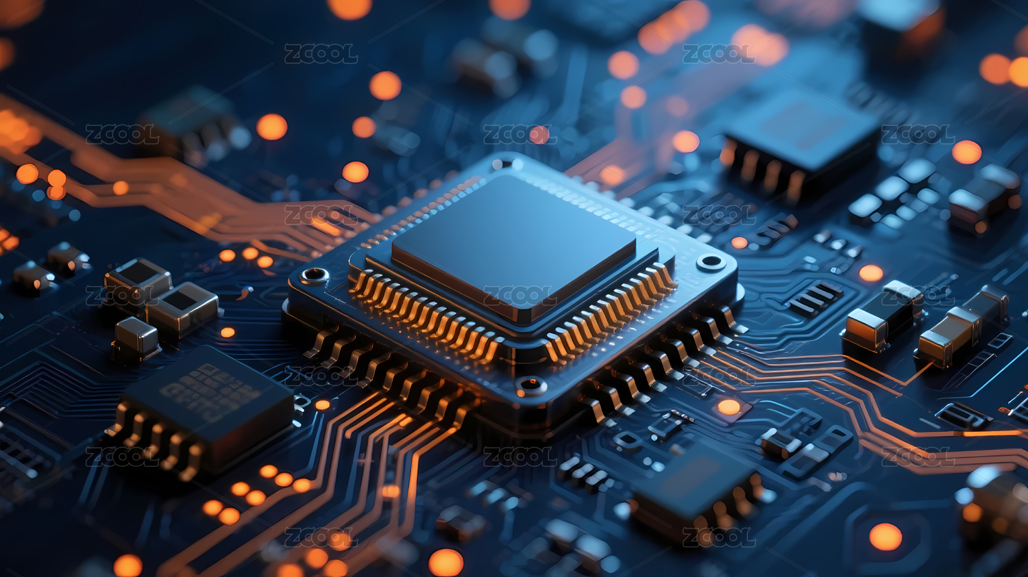 蓝色,电子,芯片,科技,橙色,设计,电路,元件,核心,硬件