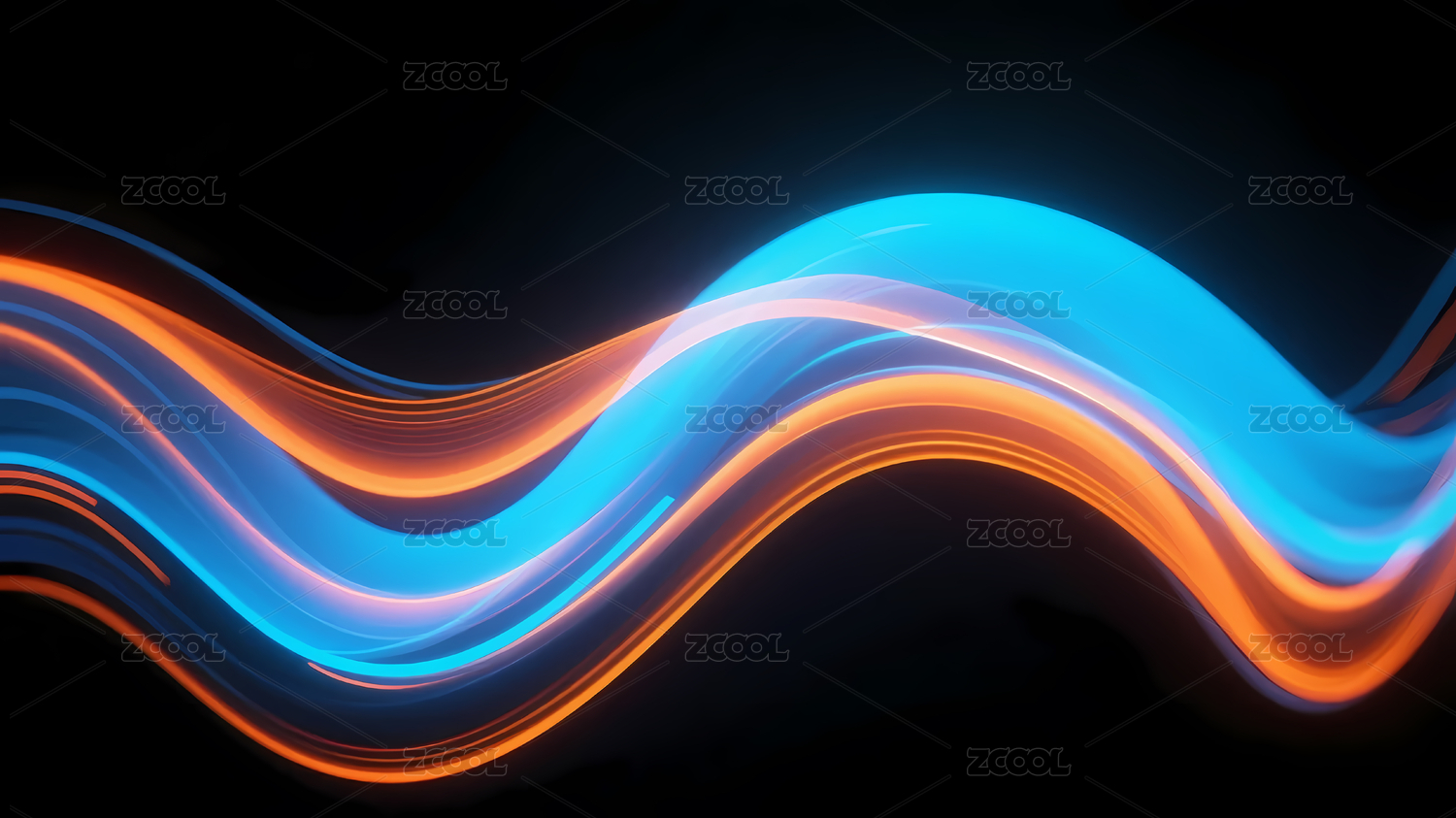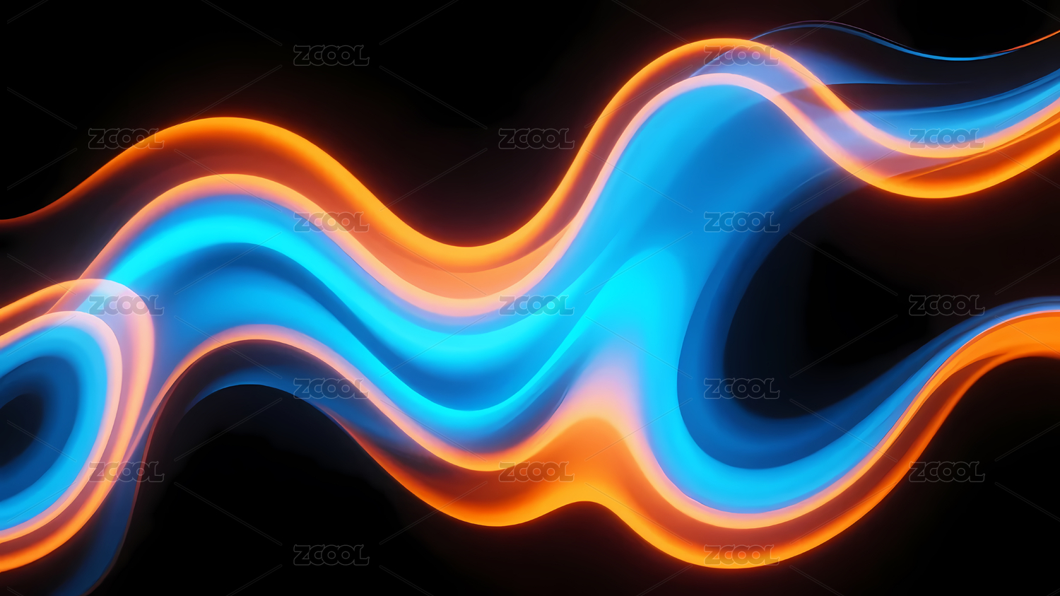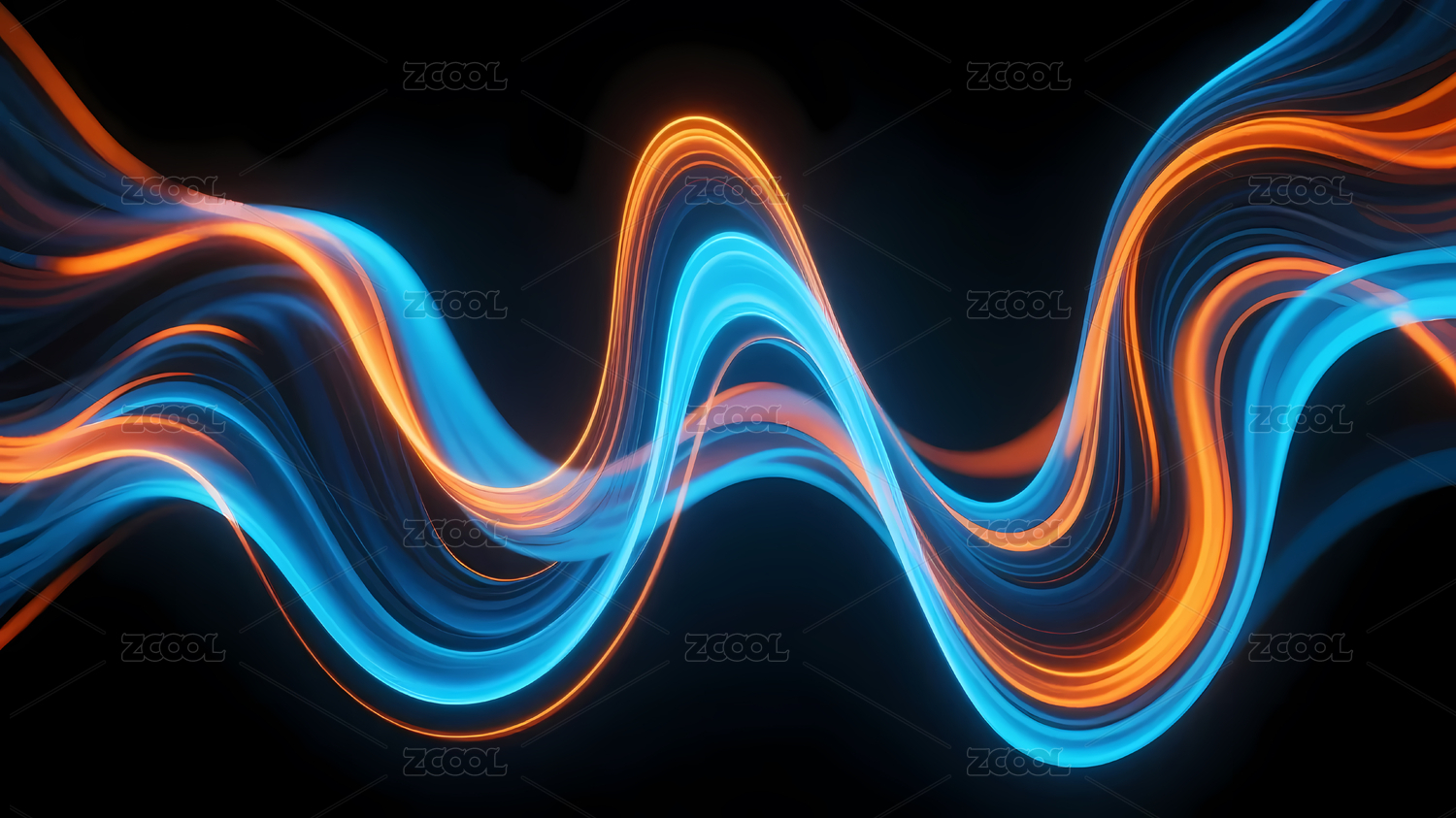 黑色背景橙蓝波浪线条