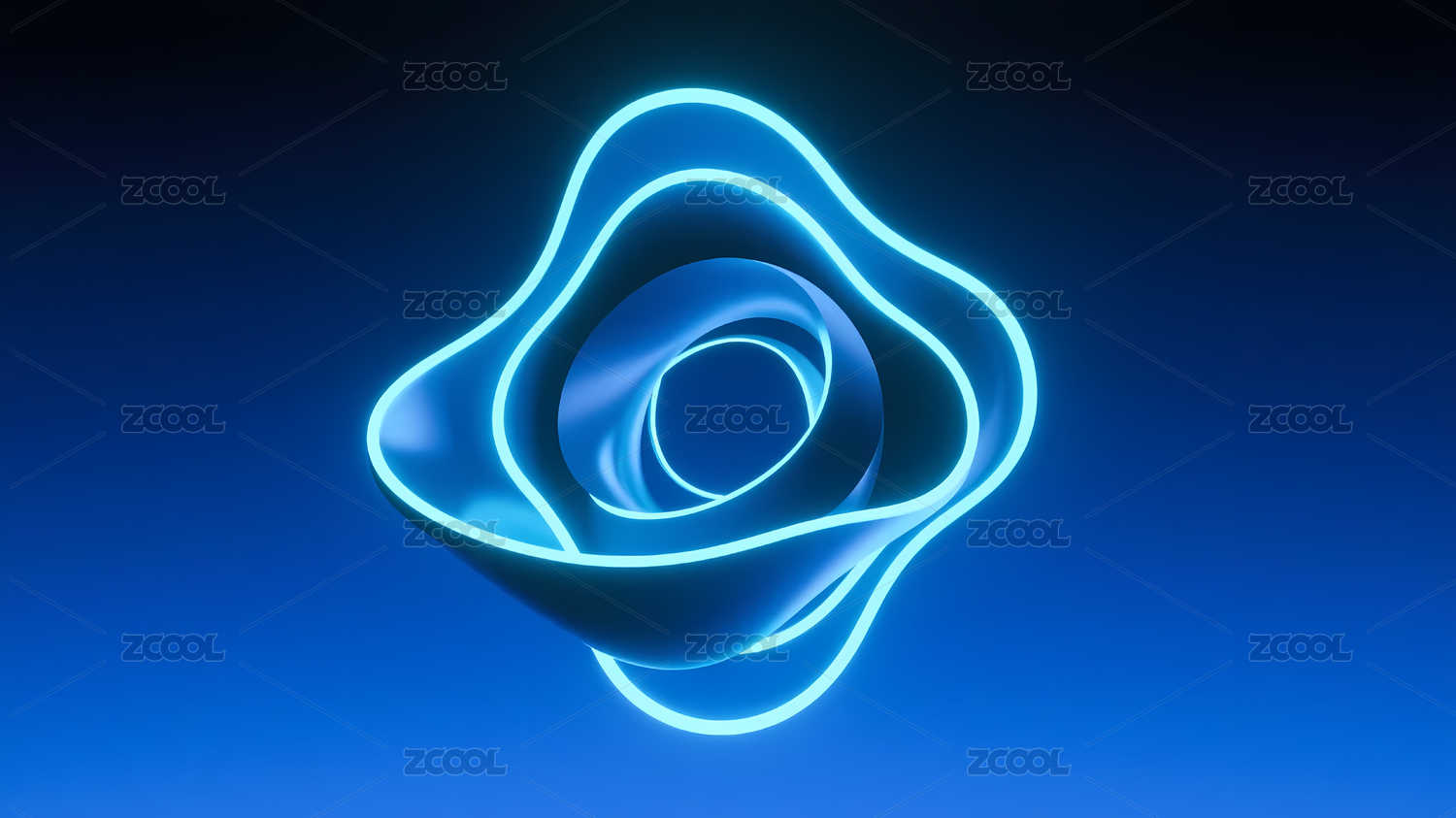 清新透明蓝底抽象浅蓝色圆环3D立体插画