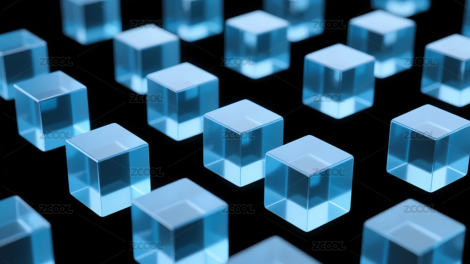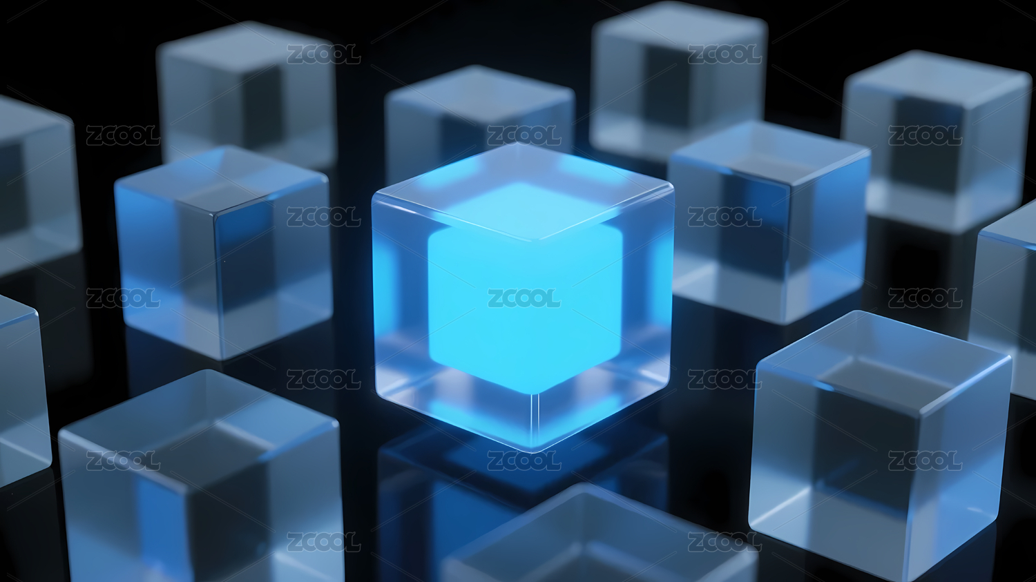 蓝色,环绕,黑色,立方体,立体,几何,对称,冷色,透明,中心