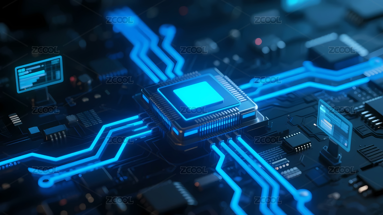 蓝色,科技,未来,深蓝,芯片,背景,电路,发光,复杂,设计