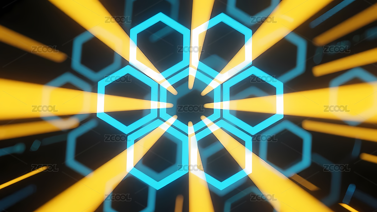 蓝色,线条,光点,科技,背景,隧道,六边形,未来,黄色,构成