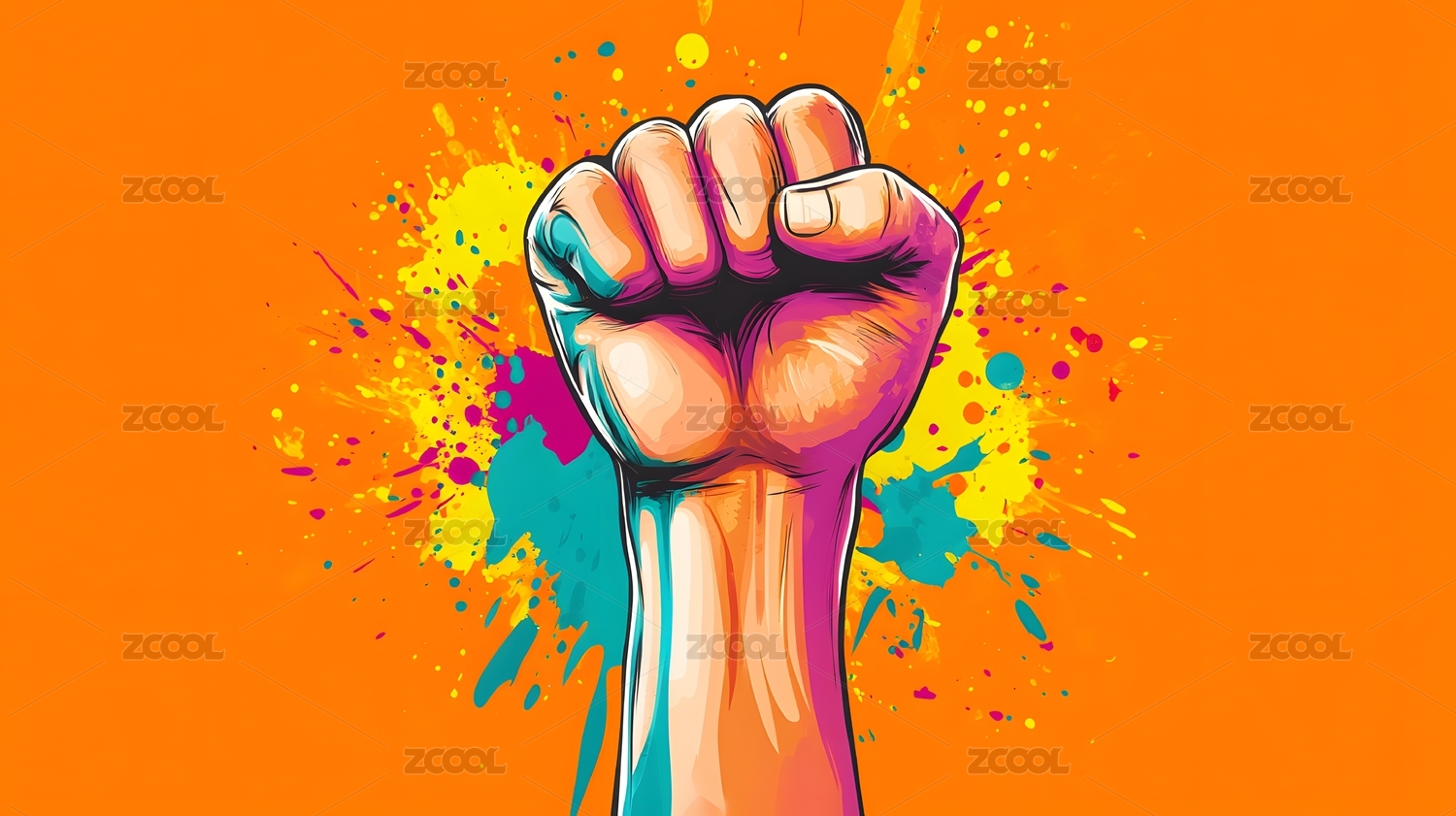 多彩,拳头,团结,力量,活力,能量,协作,图案,事业,背景