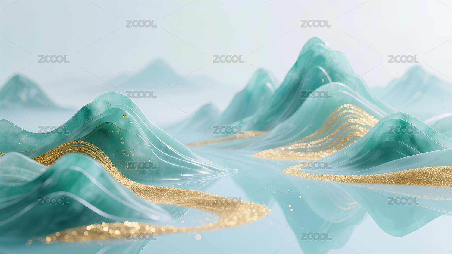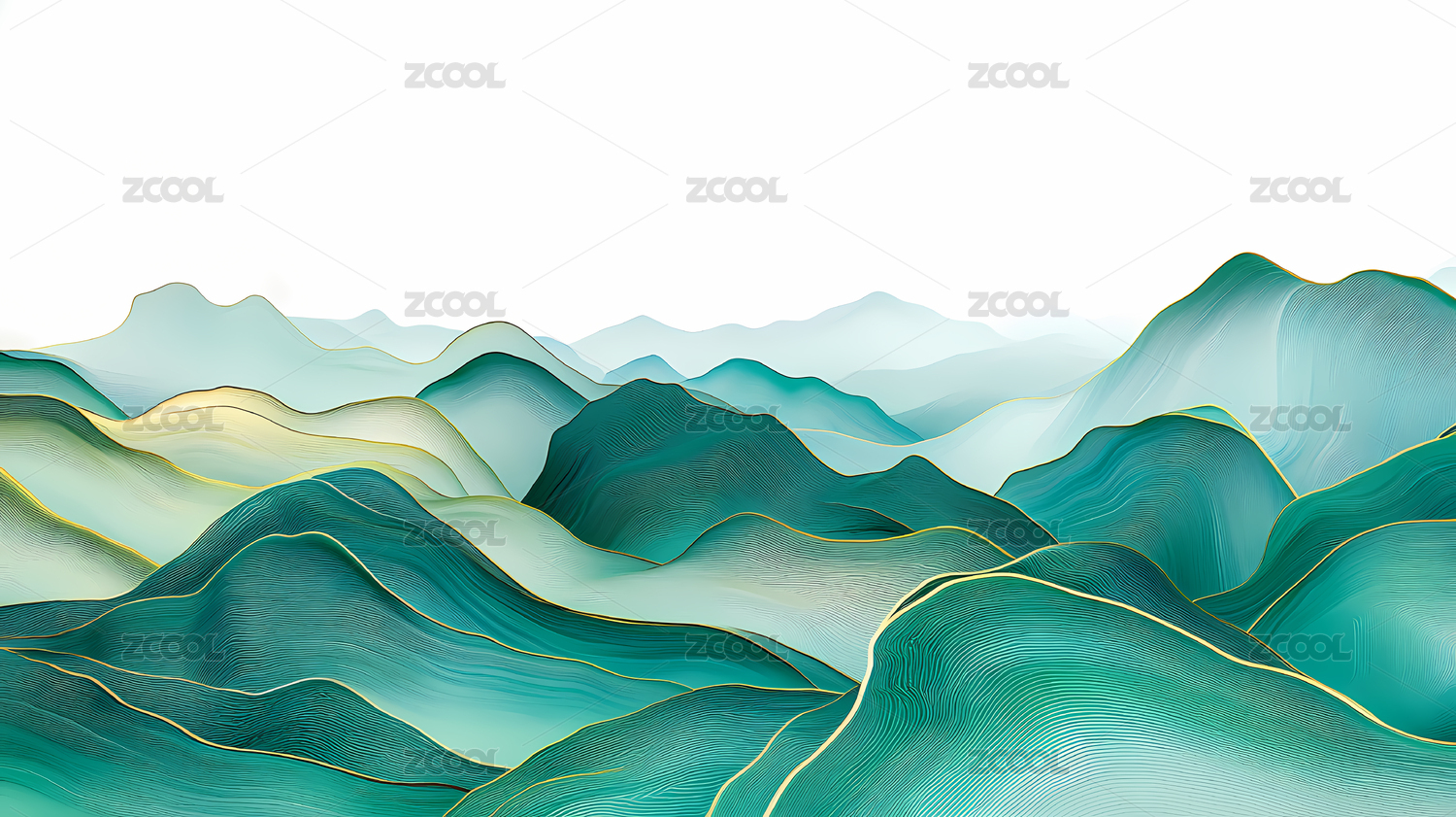青绿山水鎏金中式意境背景