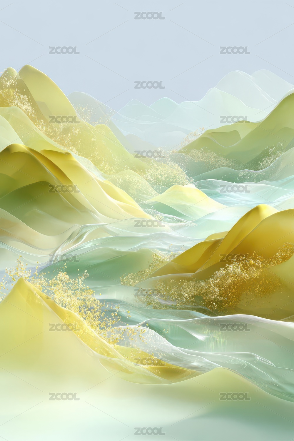 抽象山峦与金色点缀