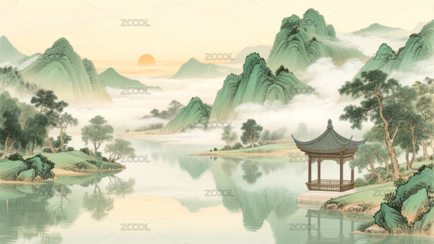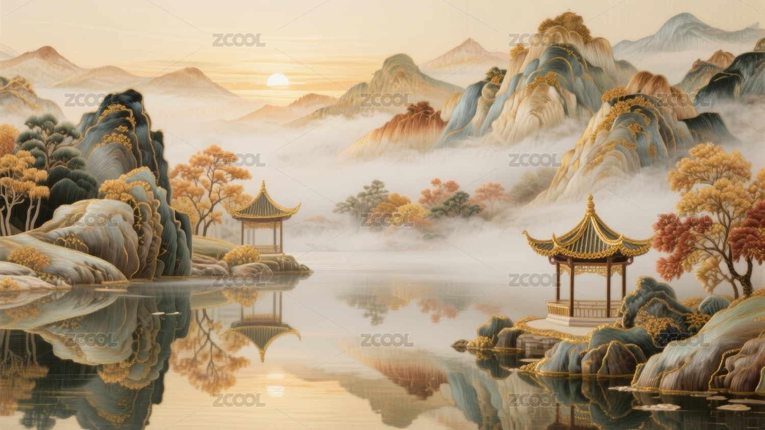 插画,自然,户外,风景,高山,天空,云,地形,宁静,秋天