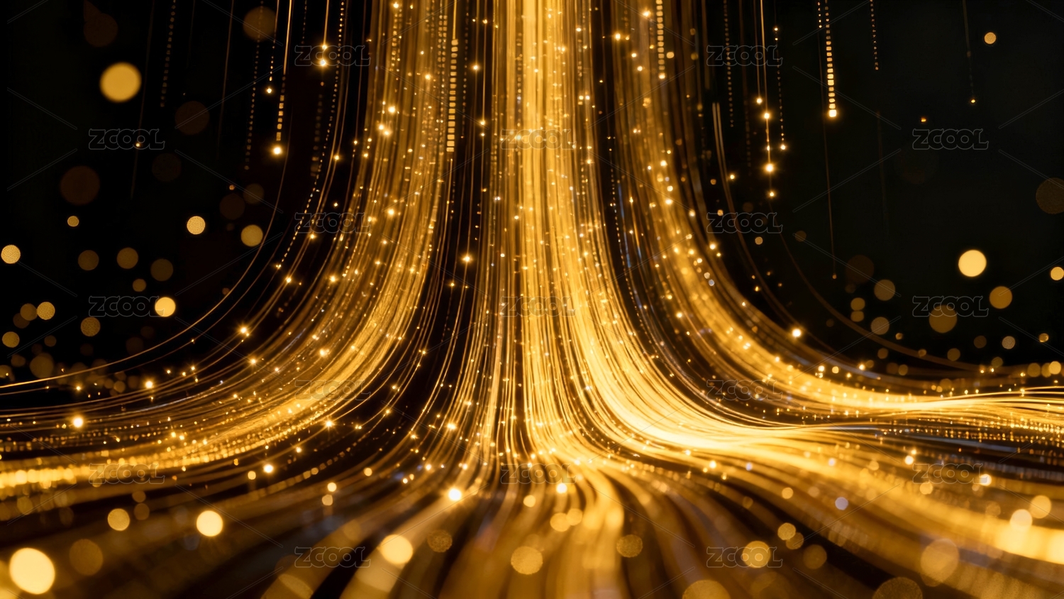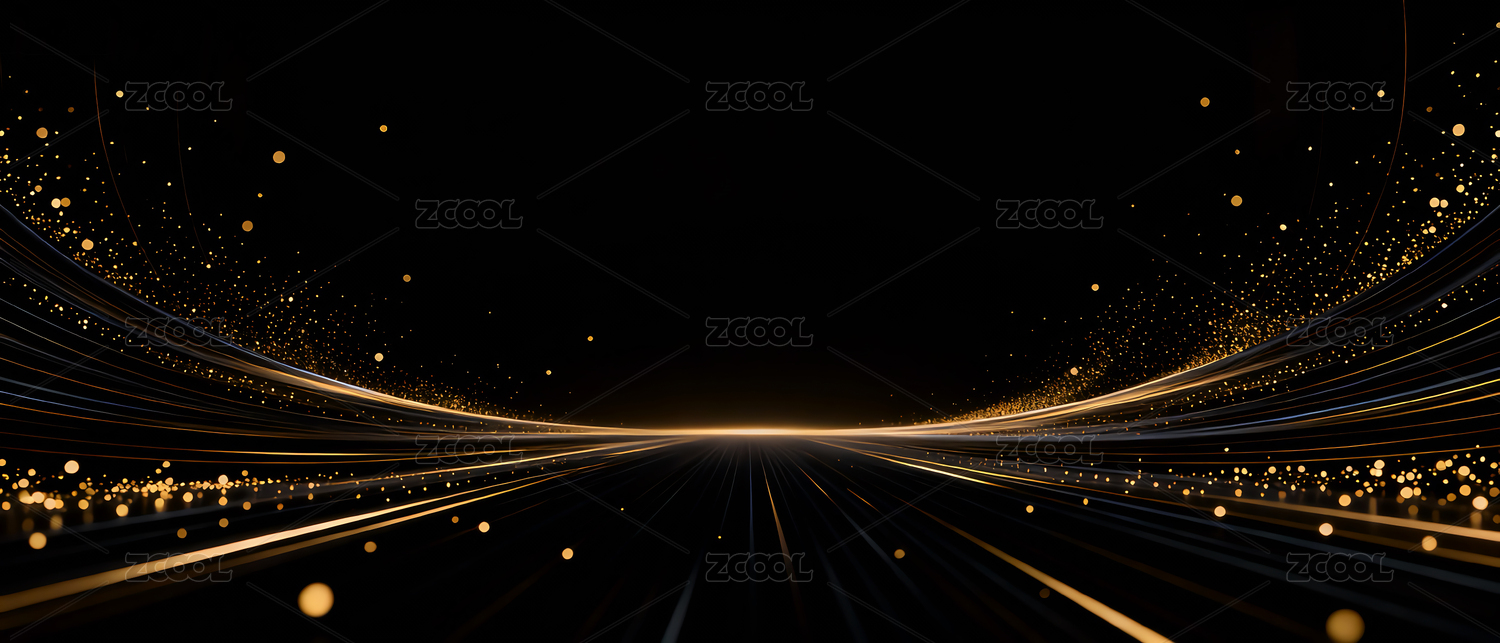 金色光带与闪烁光点的抽象艺术