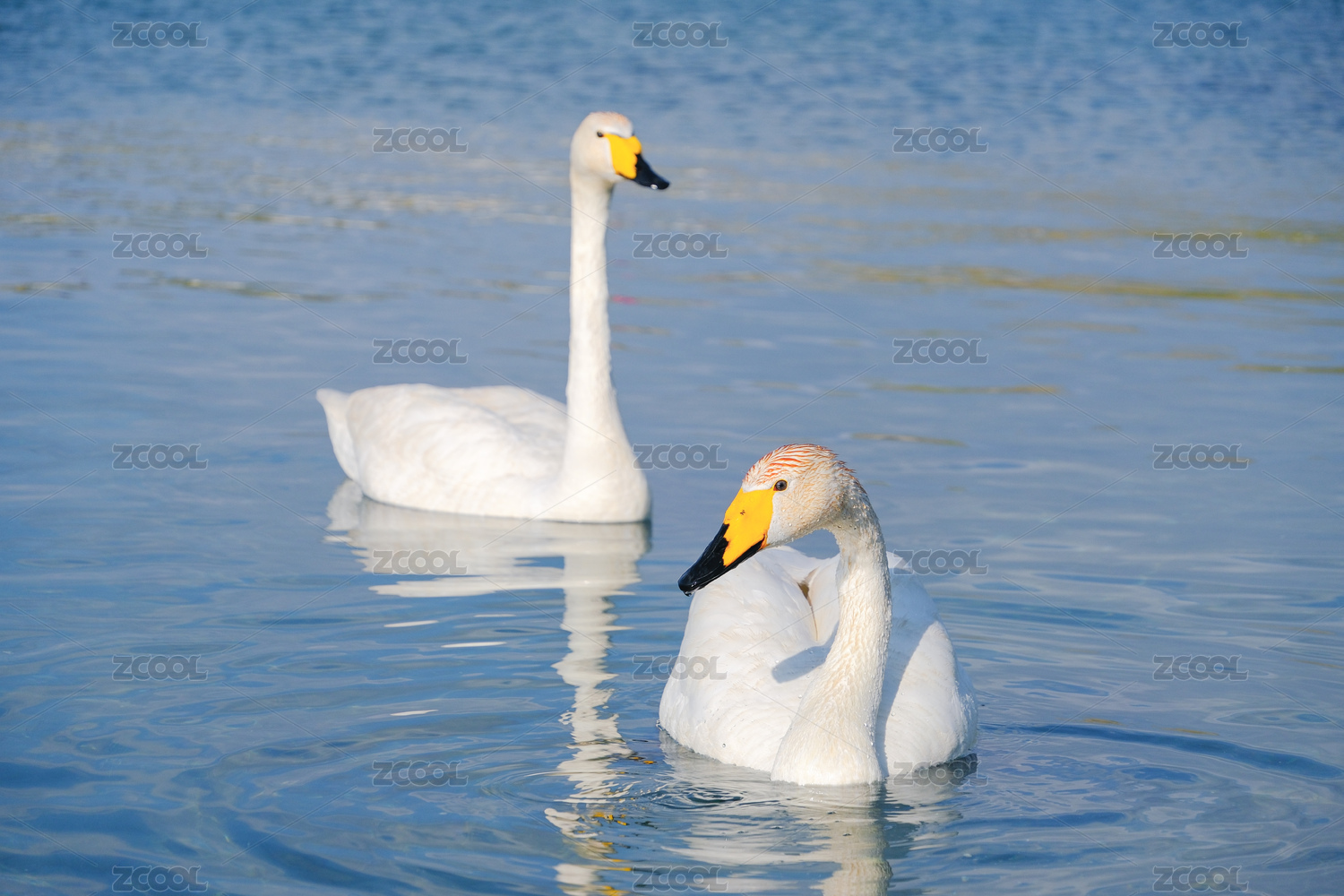 郑州北龙湖湿地公园疣鼻天鹅白天鹅水中畅游