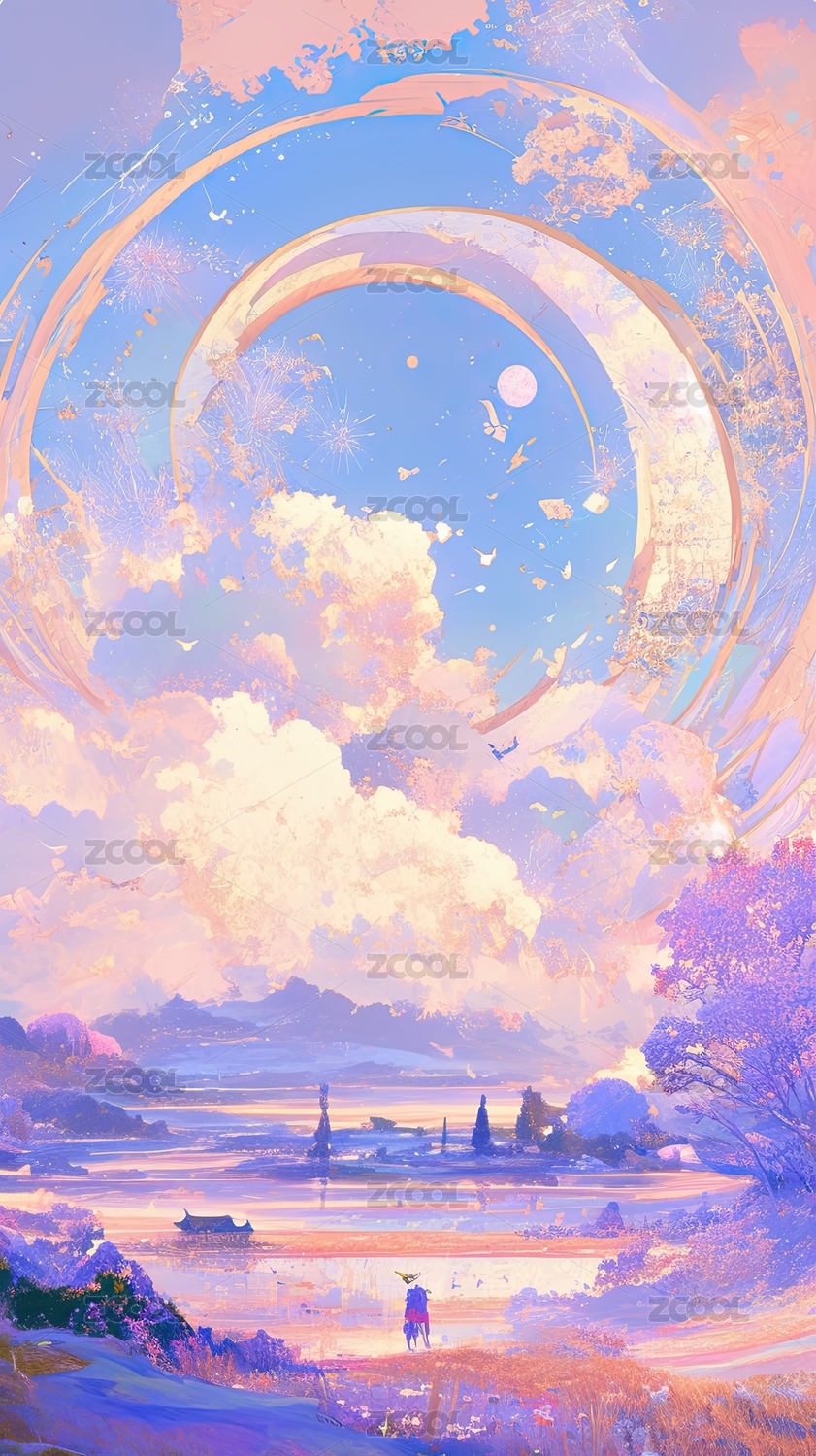 梦幻仙境中的夜空与建筑