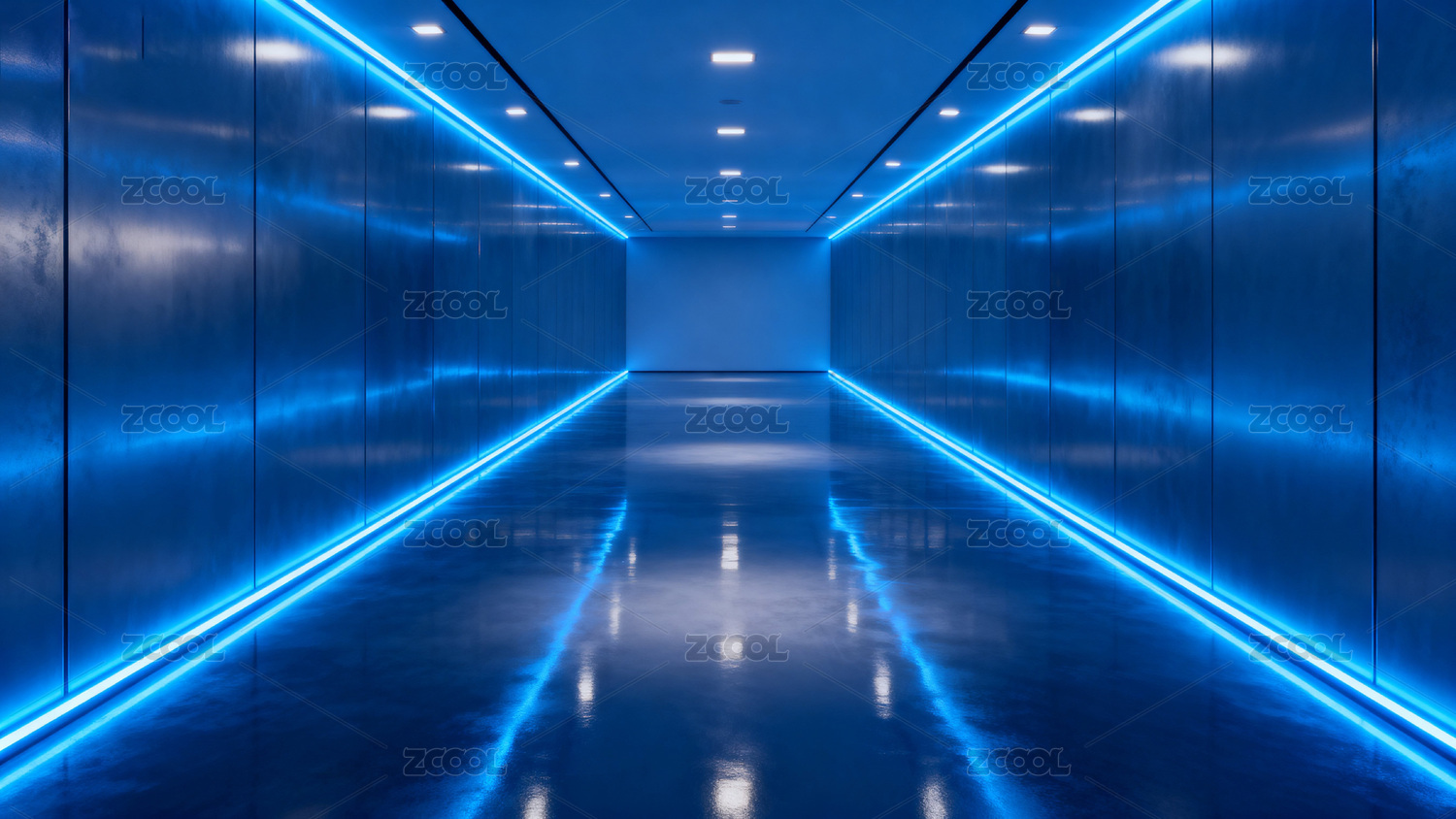 蓝色LED灯带现代科技走廊