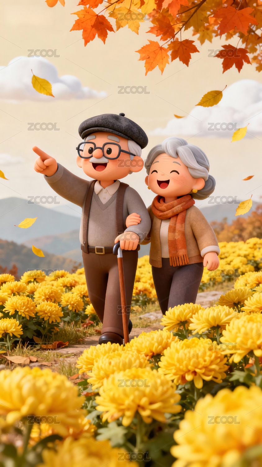 重阳节老爷爷老奶奶携手登高赏菊
