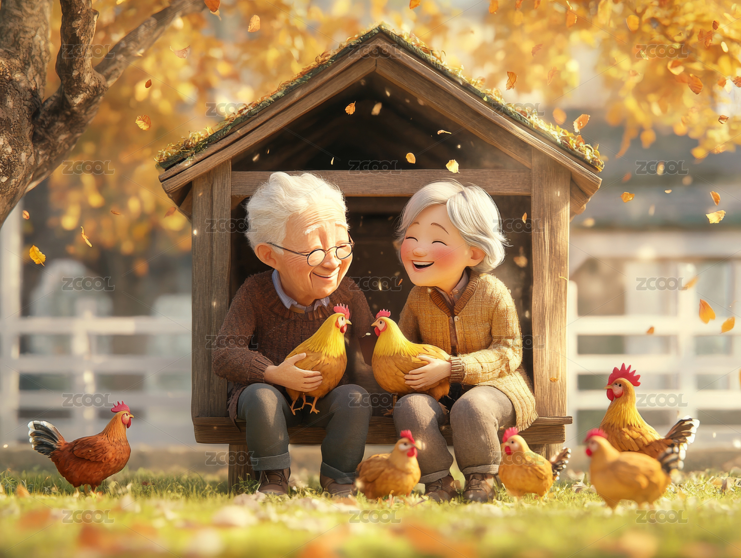 3D卡通盲盒手办风格老人,宠物陪伴概念