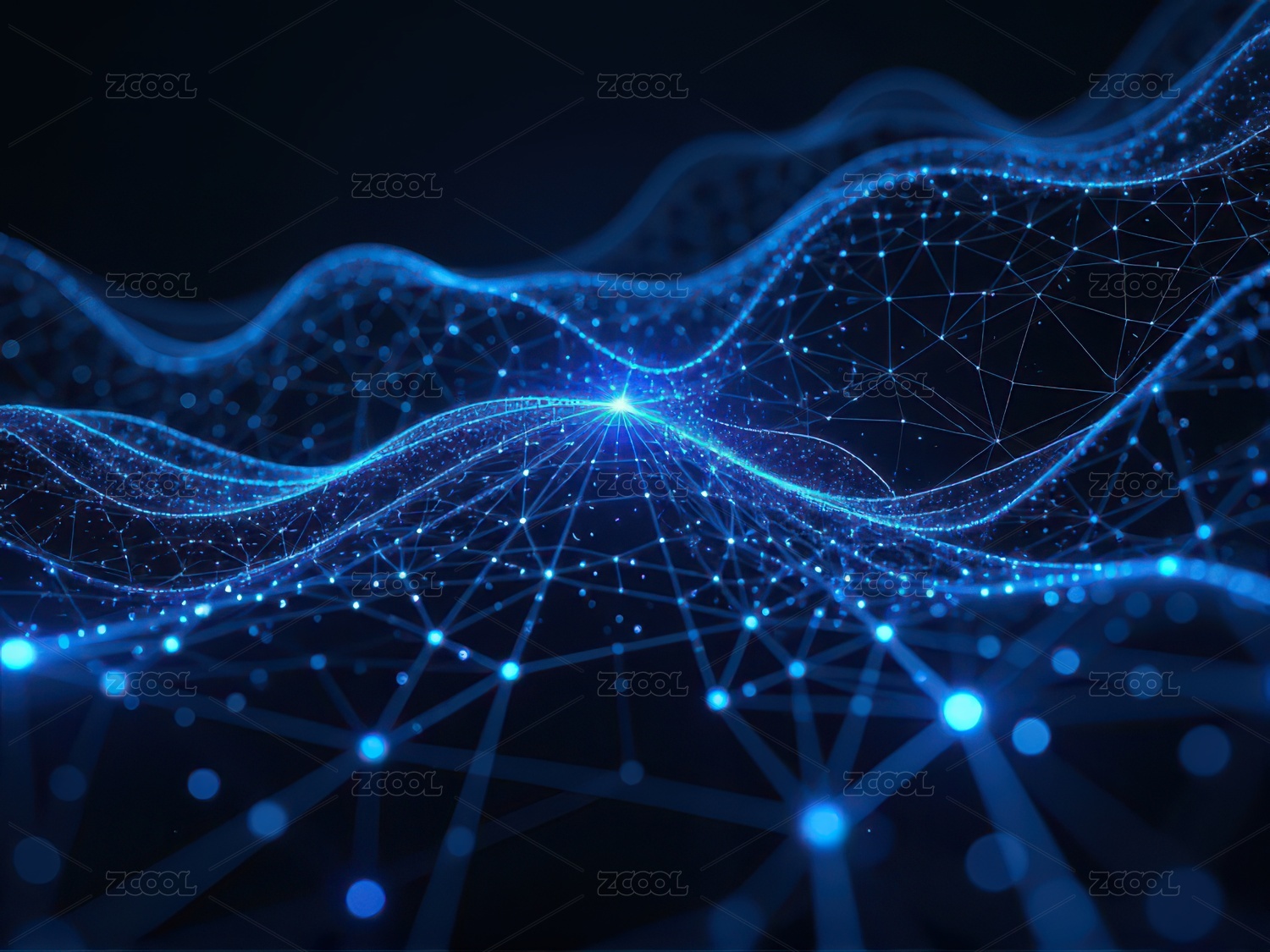 蓝色,现代,线条,波纹,光点,网络,科技,抽象,流动,闪烁