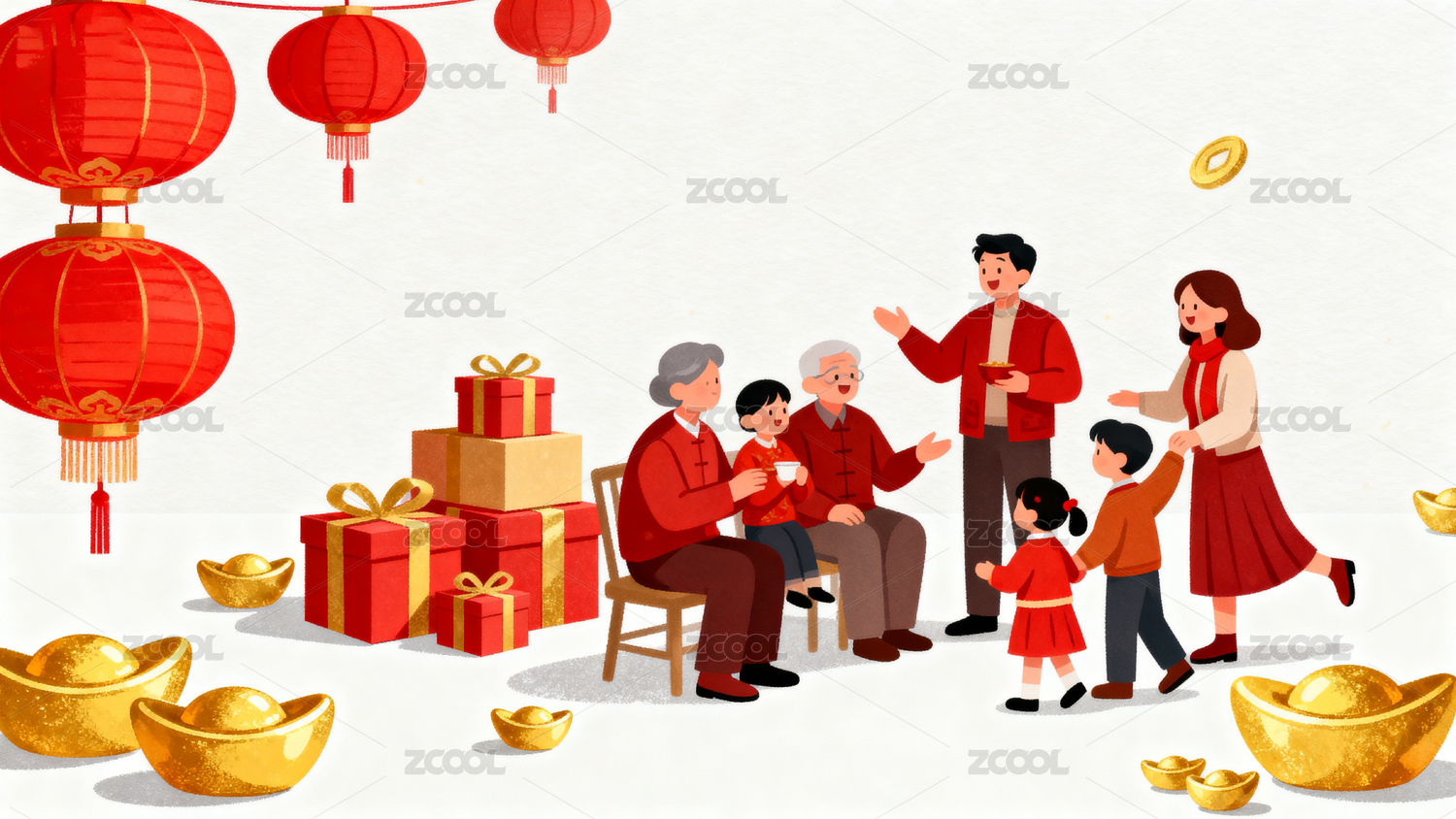 红色,椅子,装饰,礼物,盒子,新年,节日,喜庆,传统,灯笼