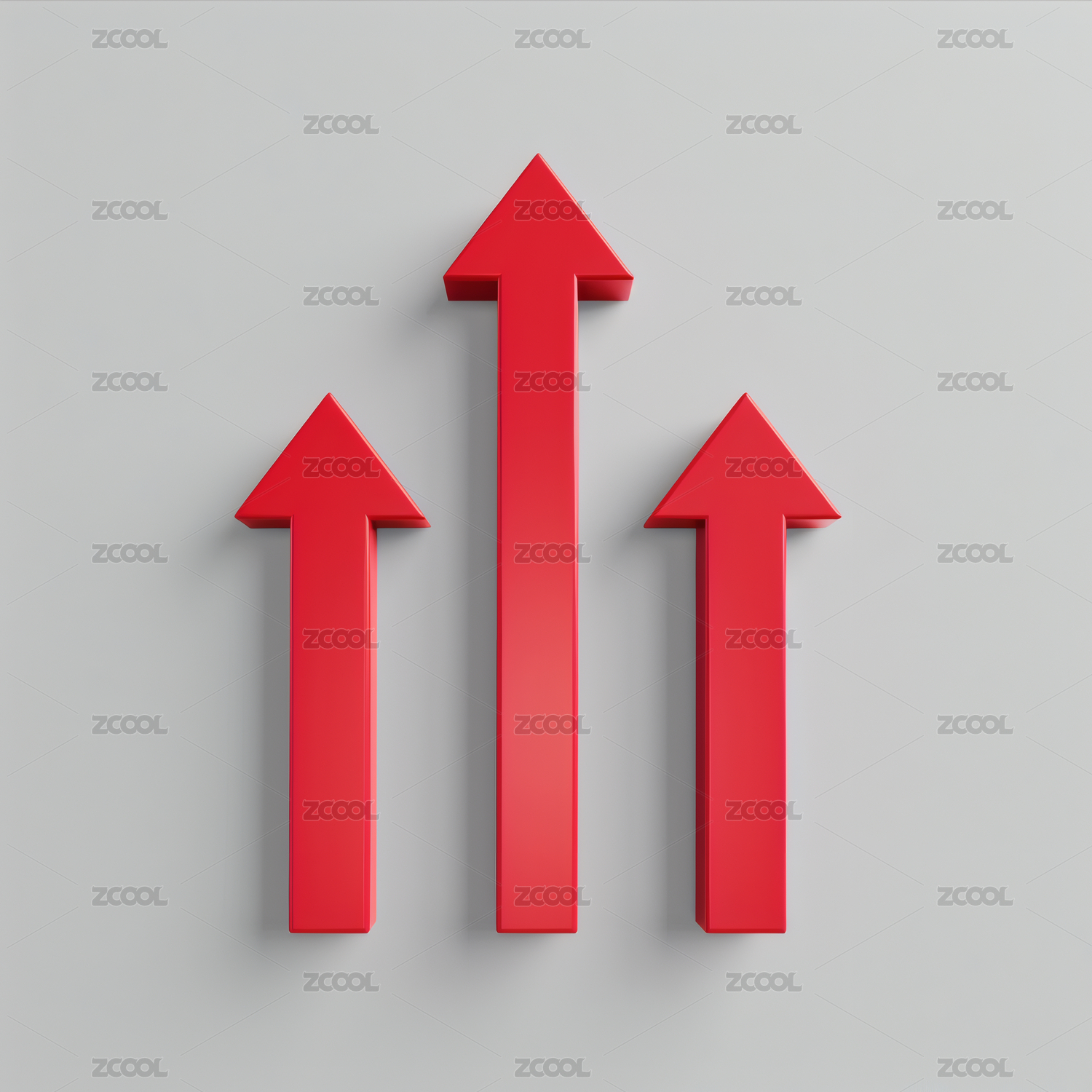 红色,箭头,向上,立体,符号,上升,方向,增长,趋势,指示