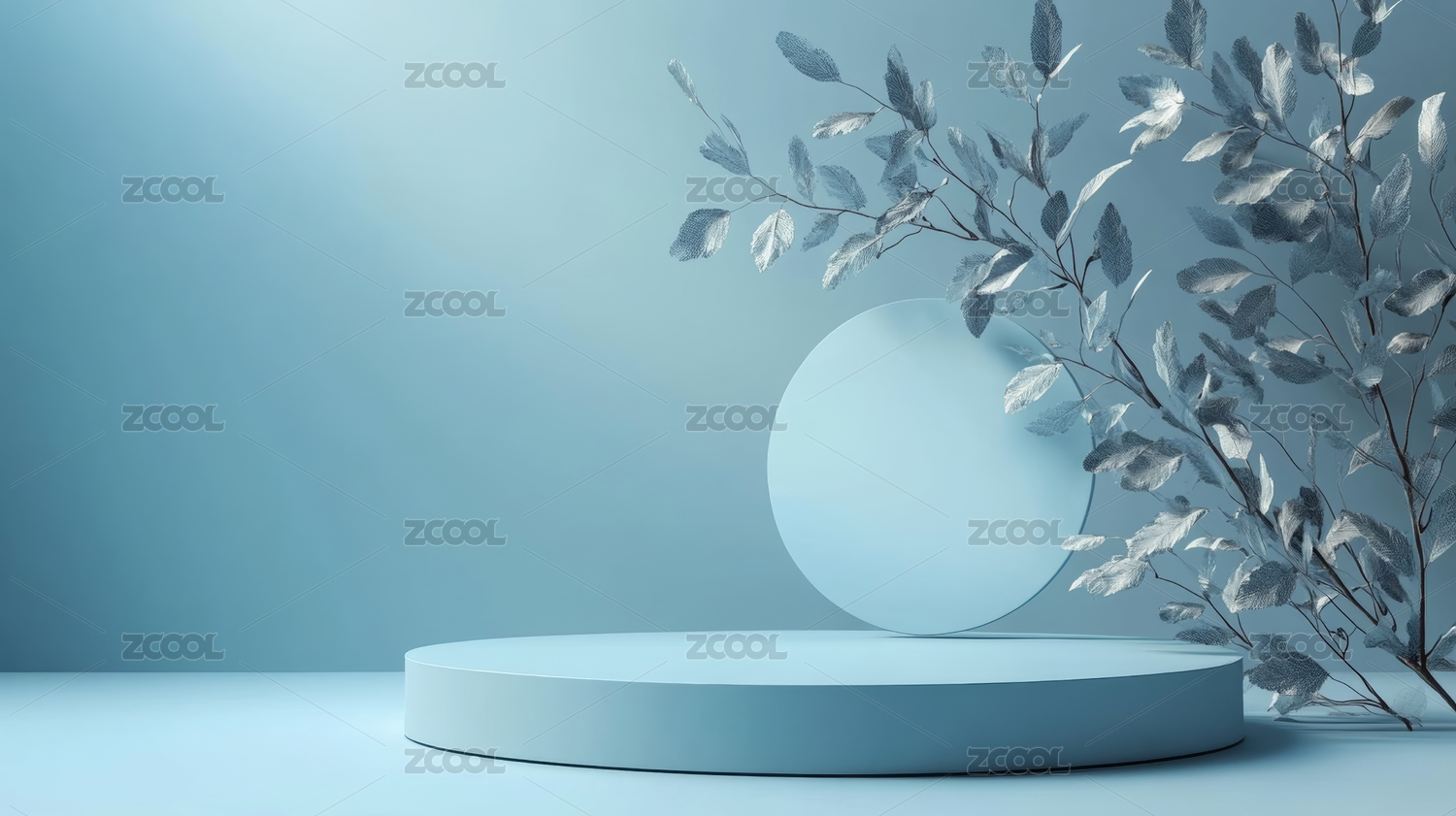 玻璃金属梦幻粉蓝渐变色展台底座背景-3D