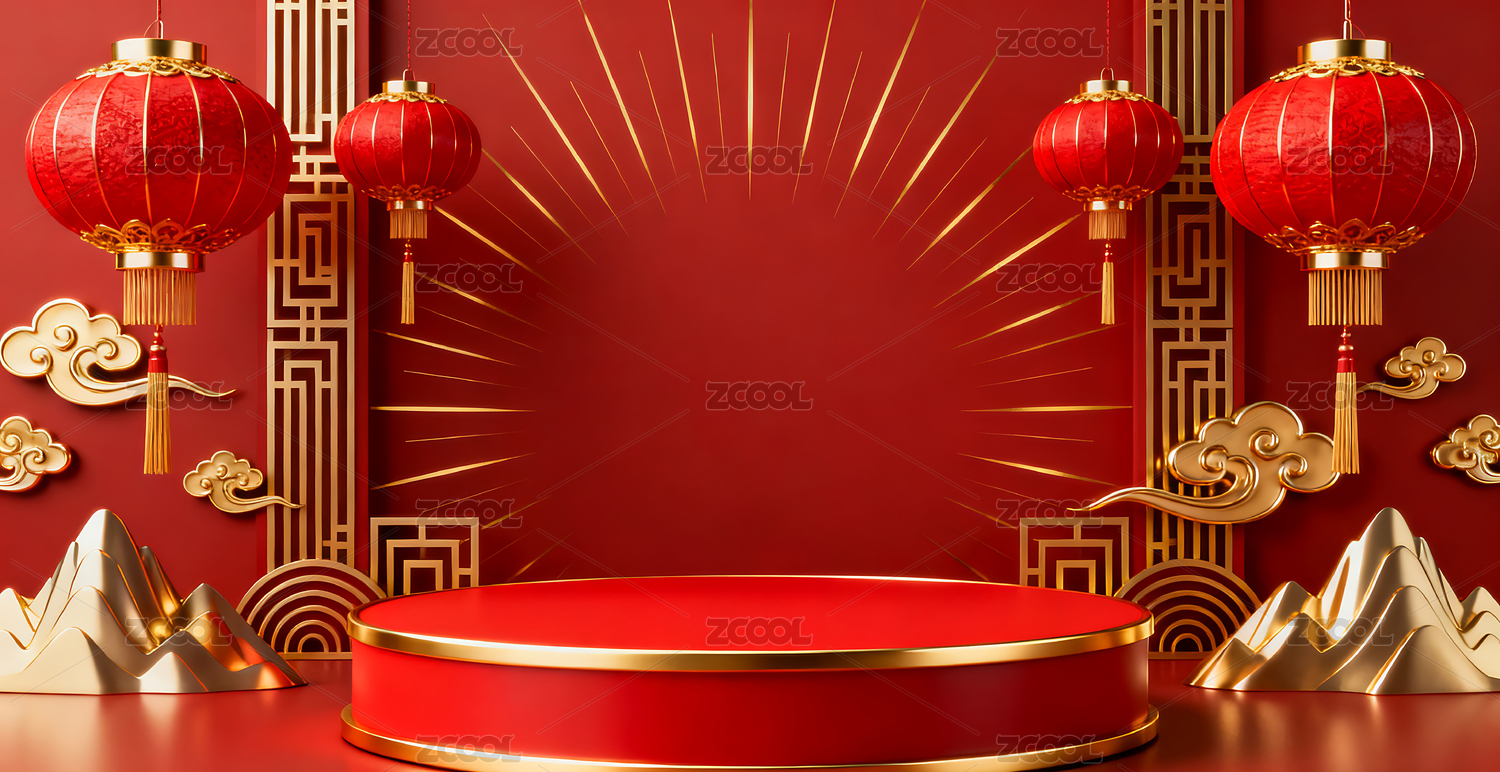 红色新年展台背景