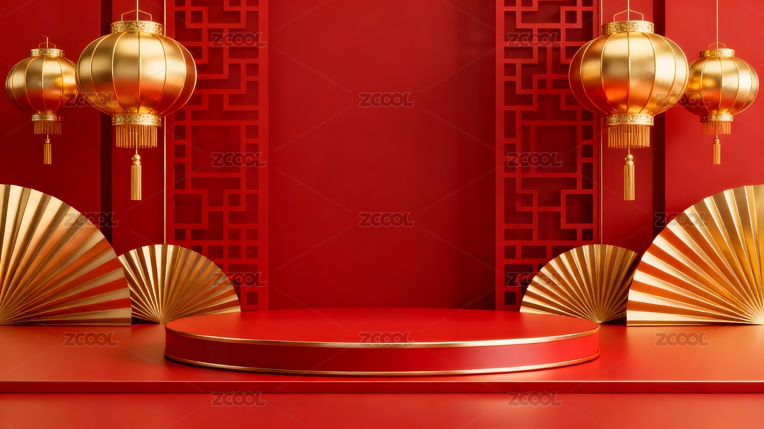 中式元素红金展示场景