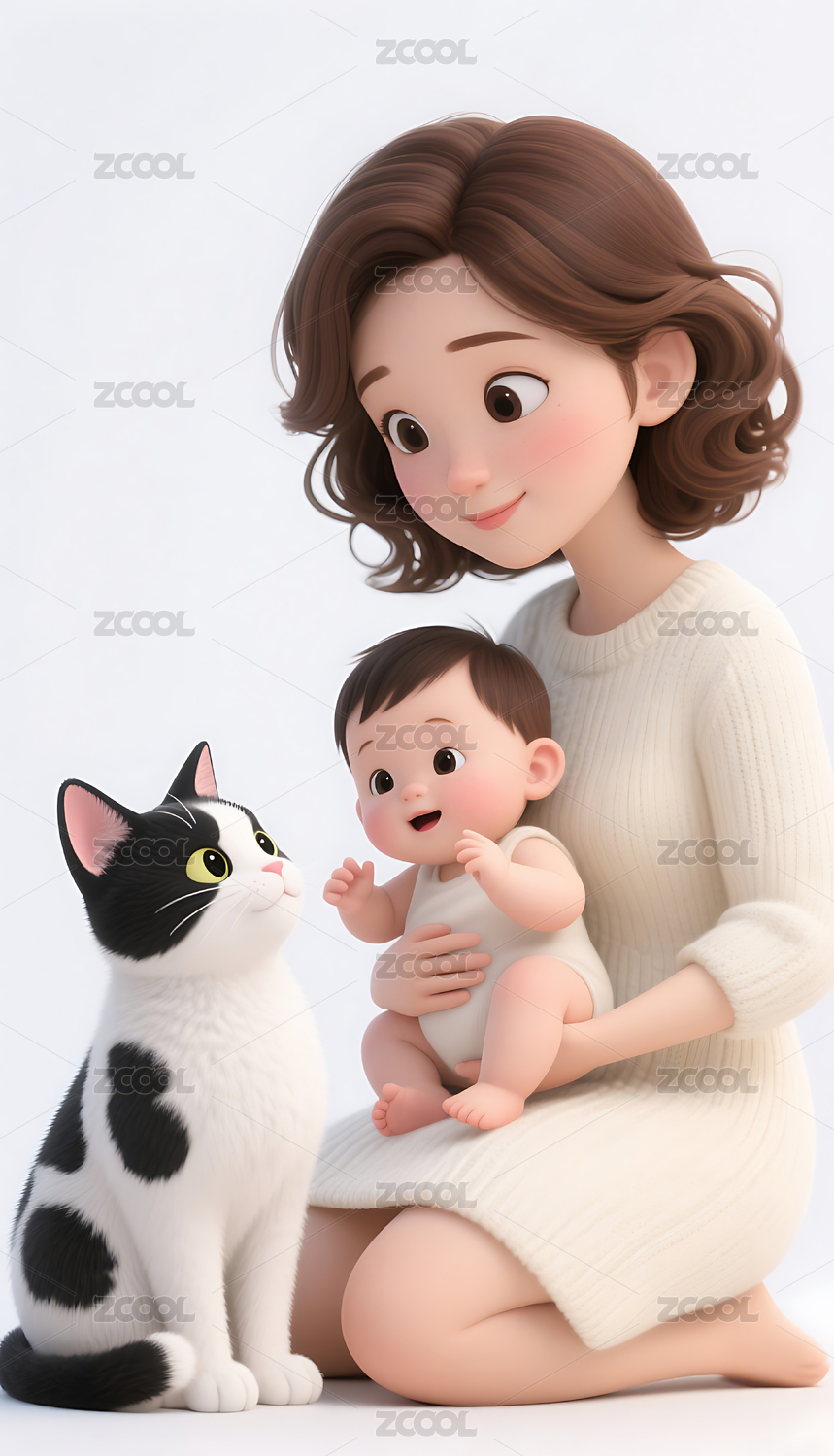 3D,卡通,母婴,母亲,婴儿,插画,背景,壁纸,可爱