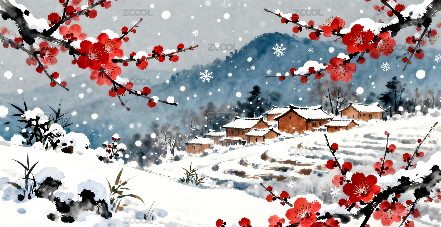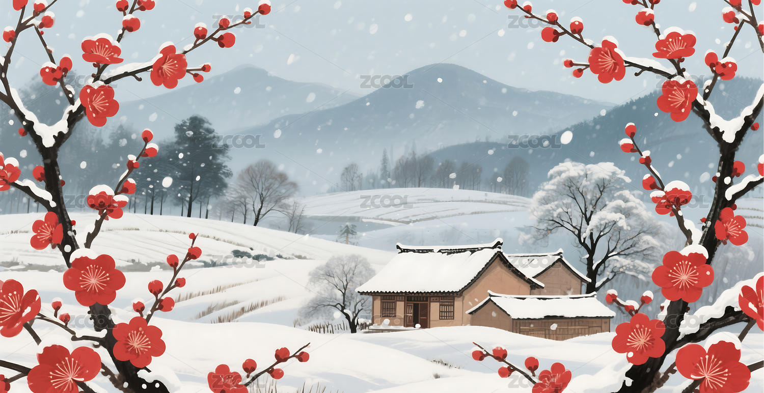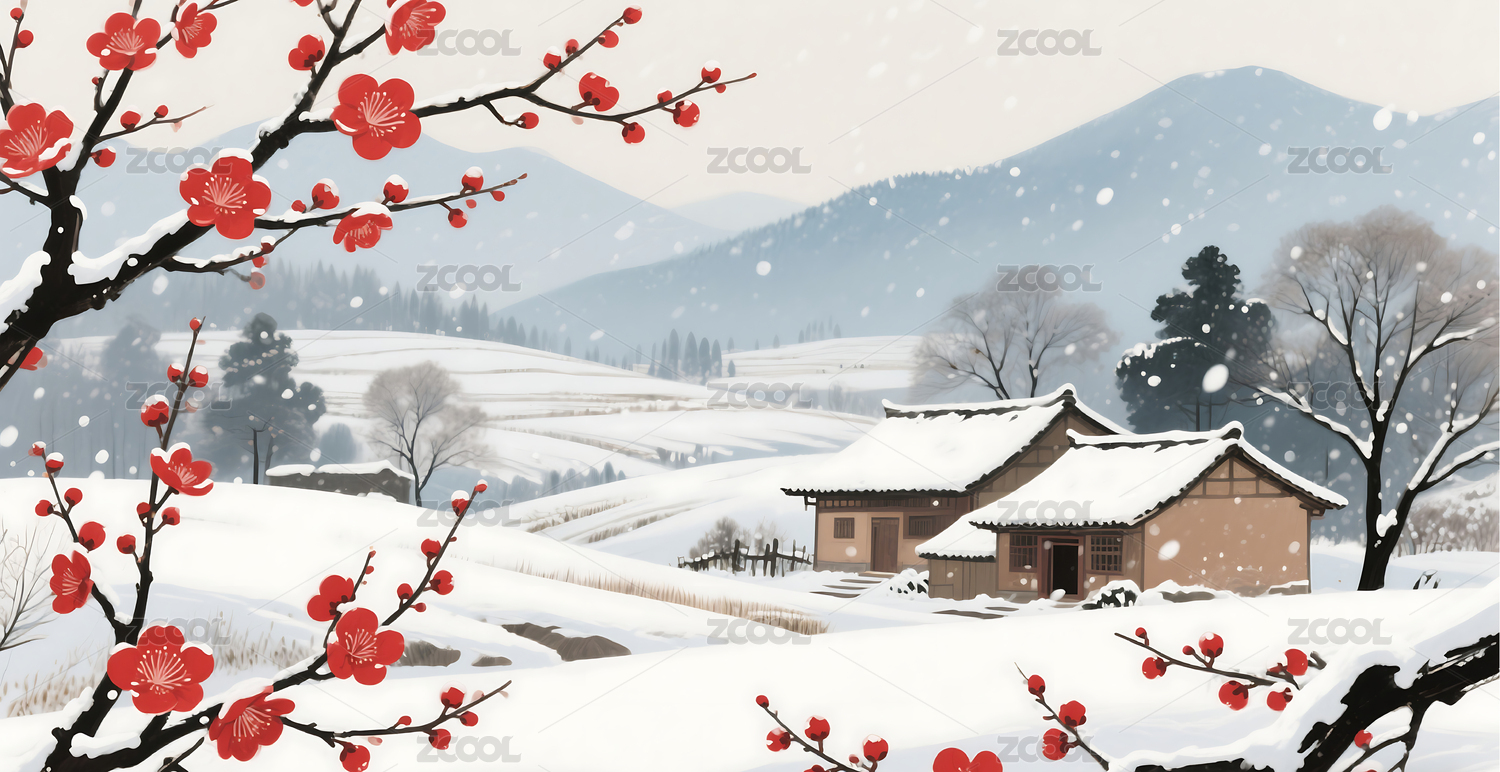 冬天,插画,梅花,雪景,冬季,冬至,中式,古风