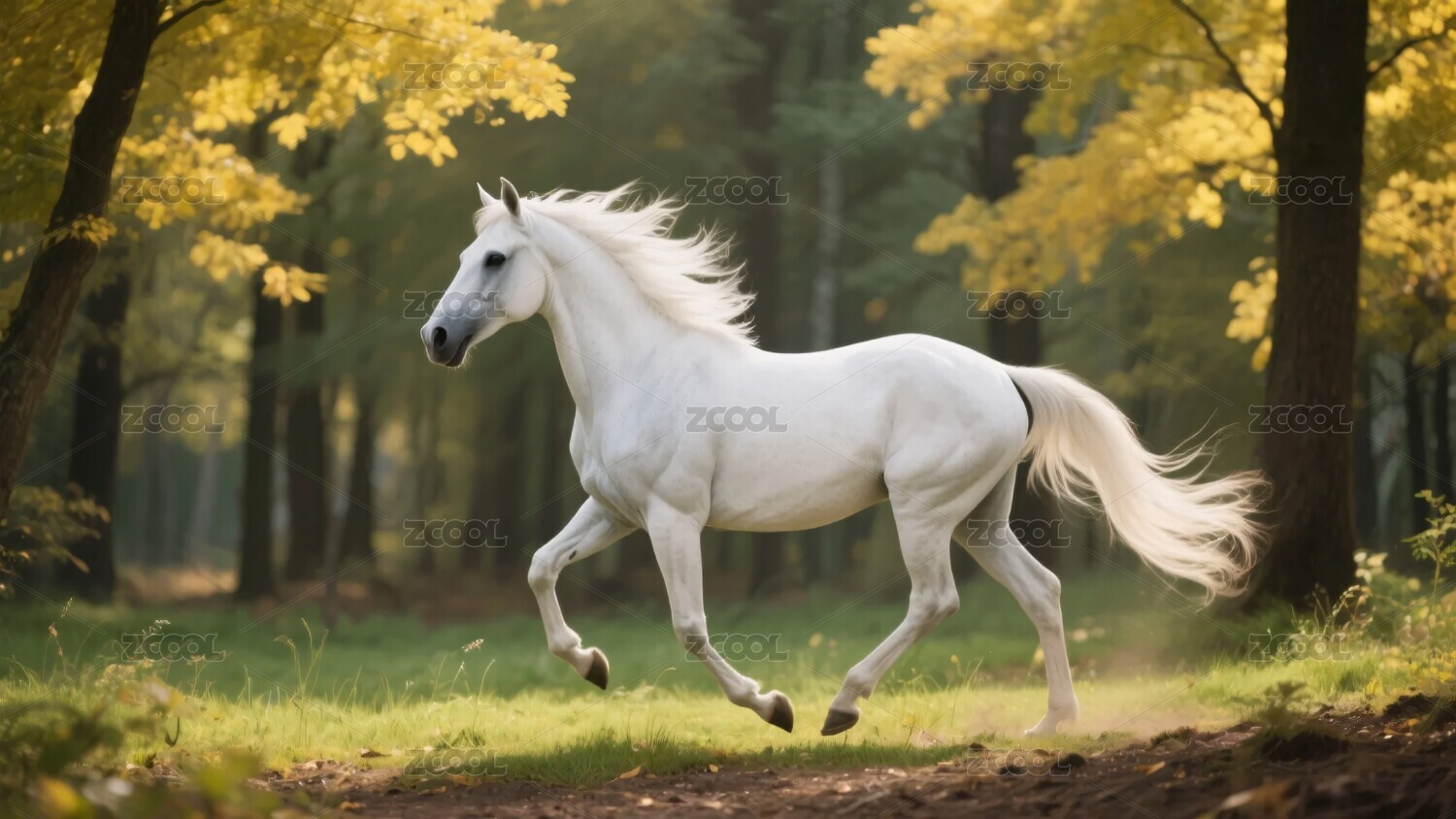 秋日林间奔腾的白马