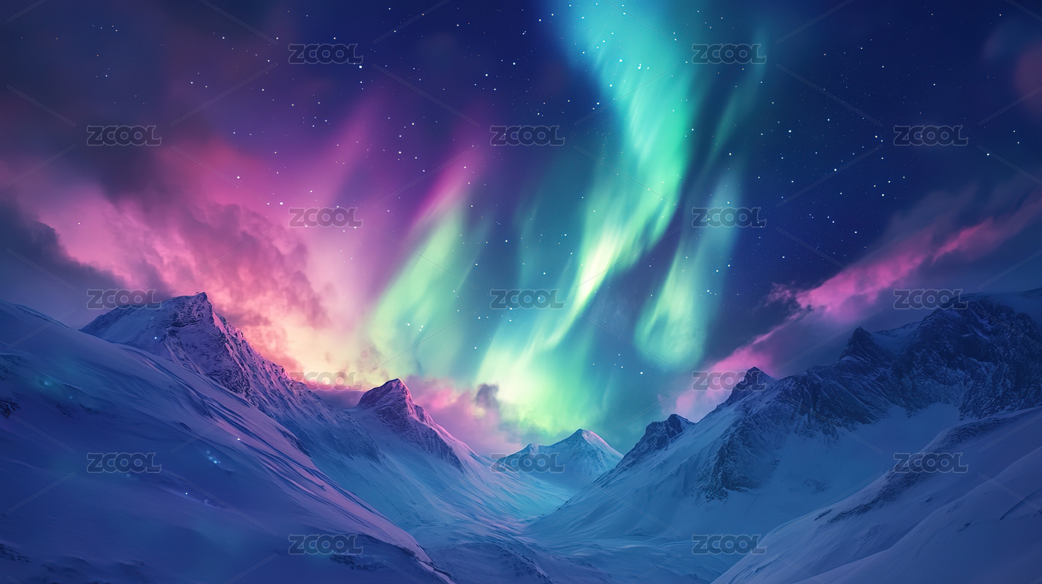 雪山极光梦幻景色