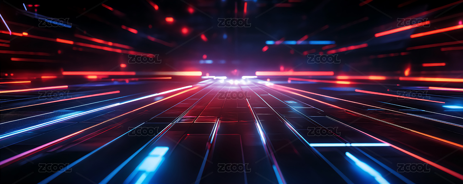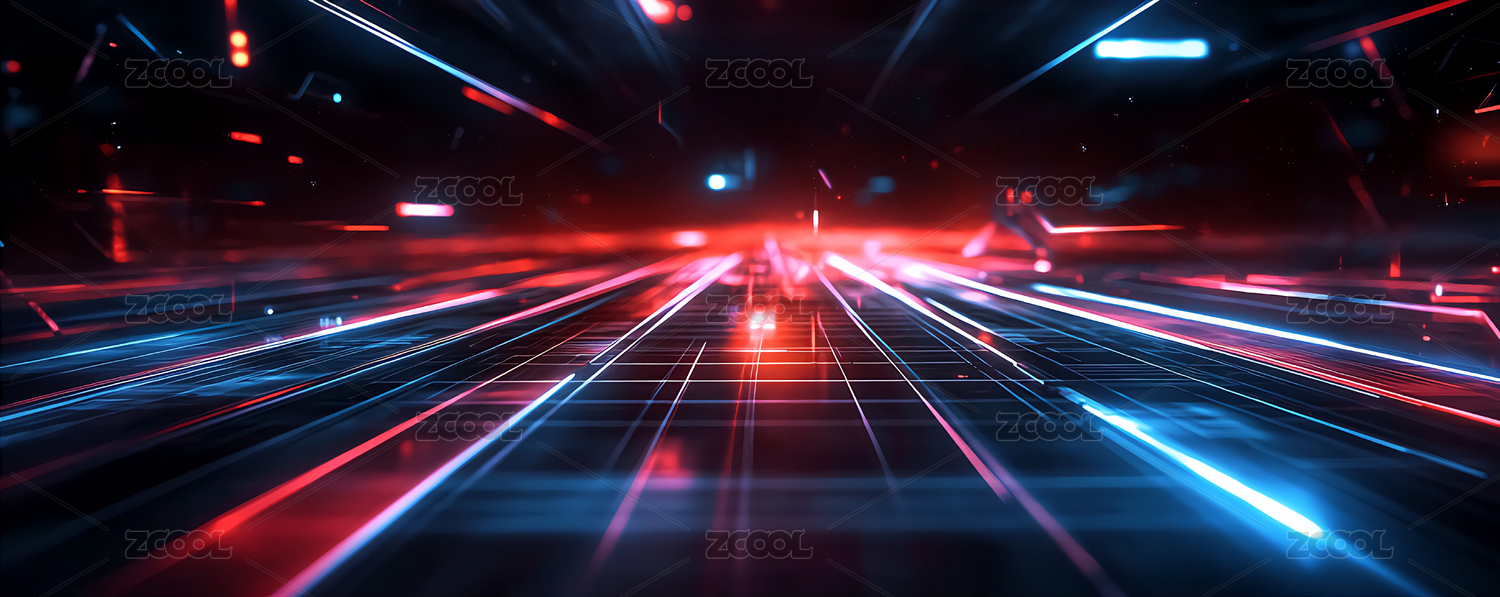 红蓝光束交错的炫目图景