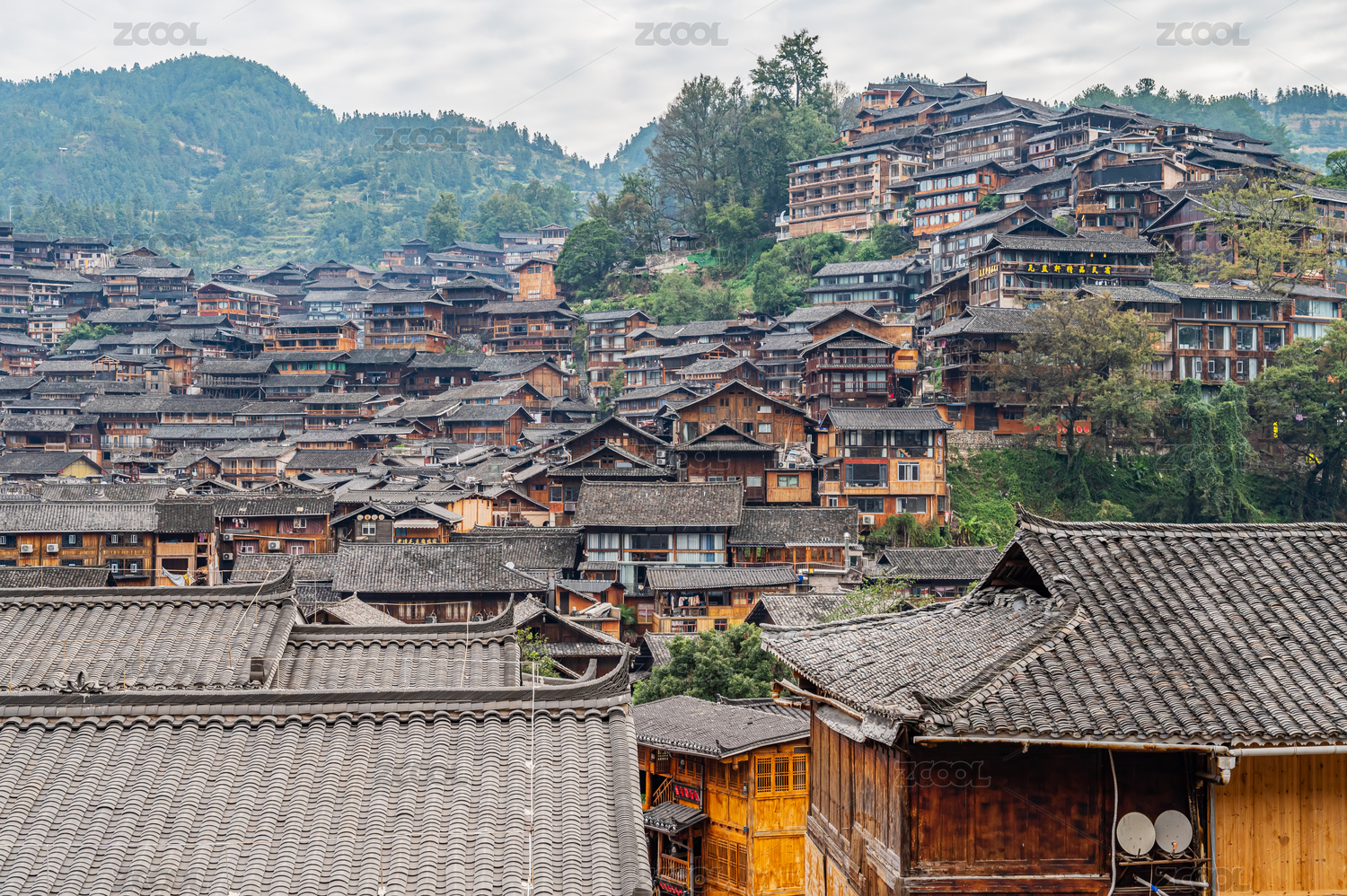贵州黔东南雷山县西江千户苗寨建筑风光
