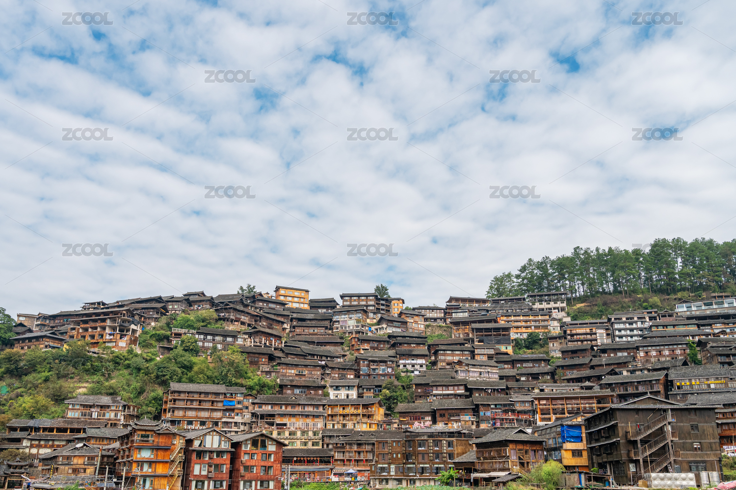 贵州西江千户苗寨|苗族特色建筑群仰视图