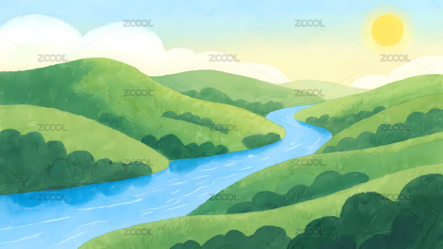春天,春节,季节,野外,户外,风景,插画,平面,笔触,高山