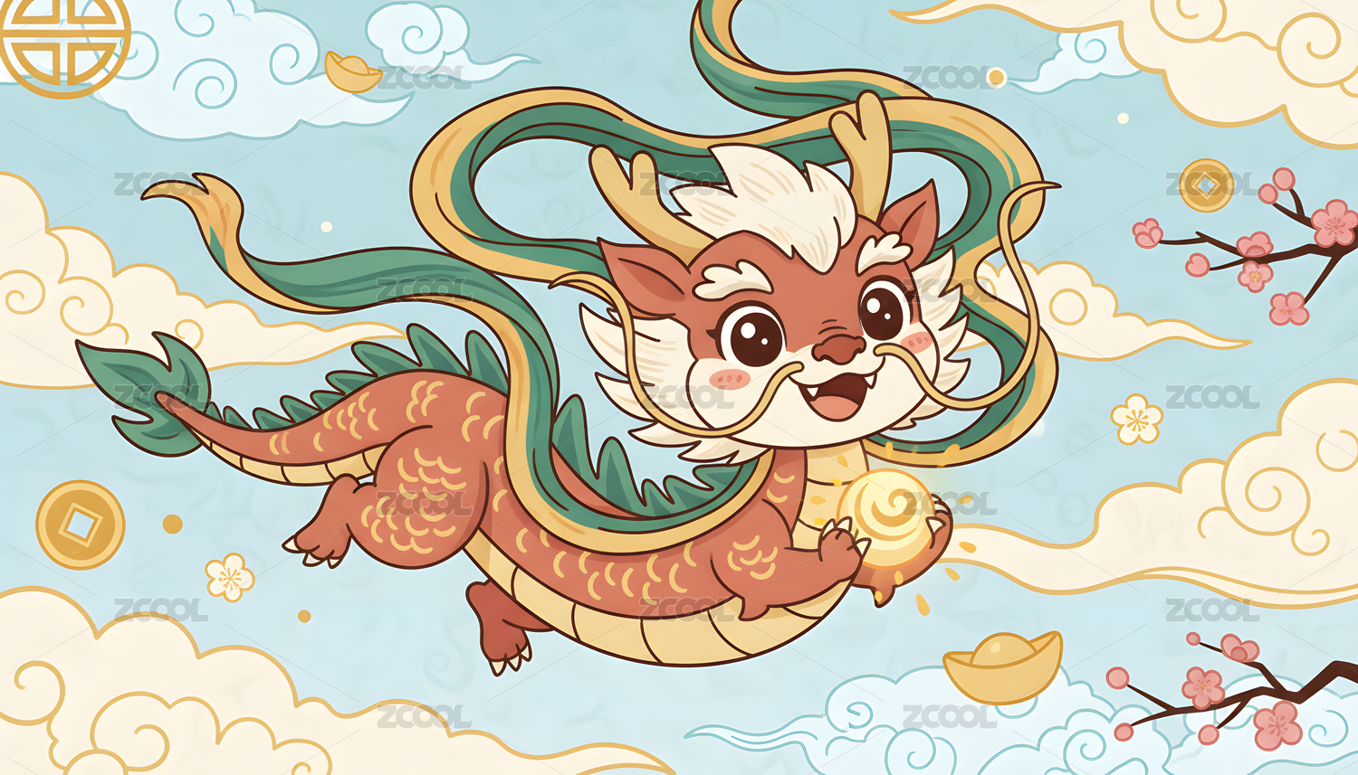 中国风,国风,插画,平面,扁平,传统,龙,传说,神话,生肖