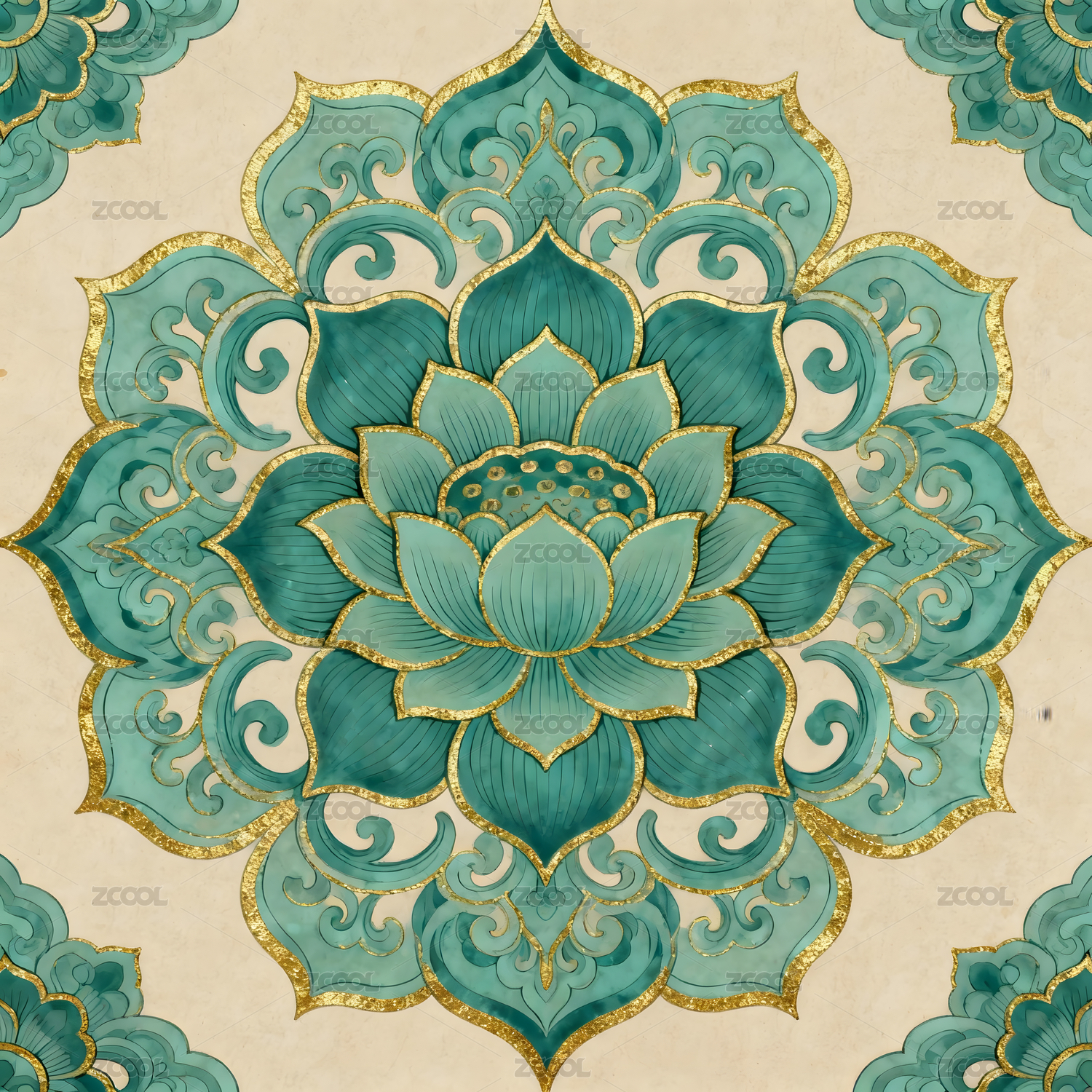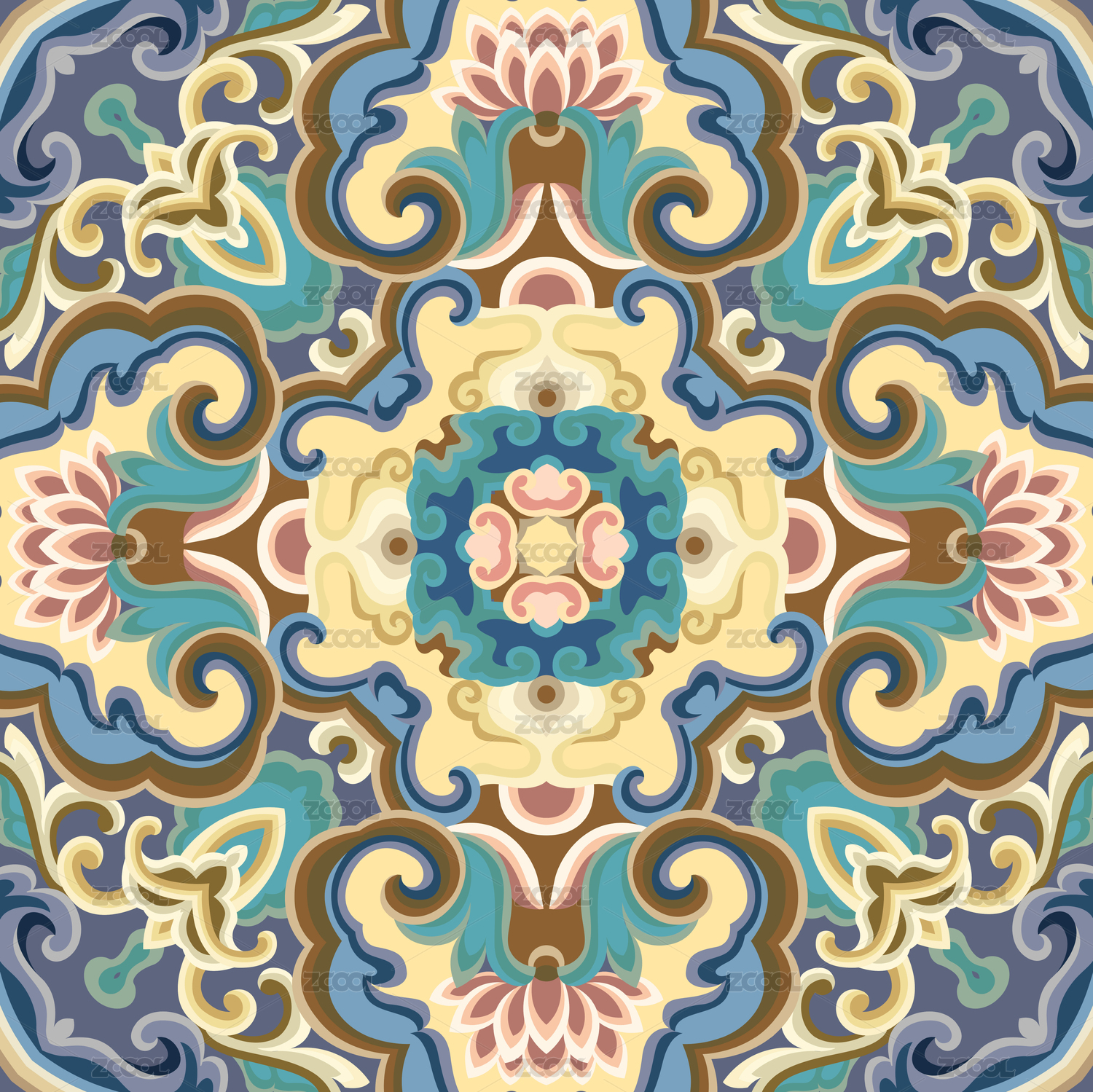 敦煌纹样四方连续图案无缝纹理图手账贴纸