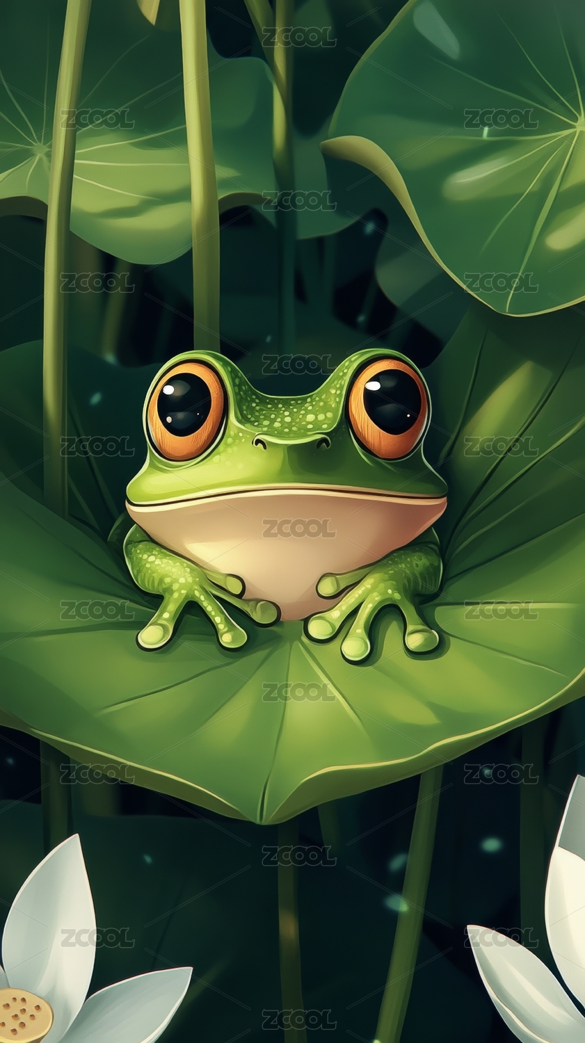 池塘,荷花,荷叶,青蛙,动物,场景,水面,可爱,卡通,动画
