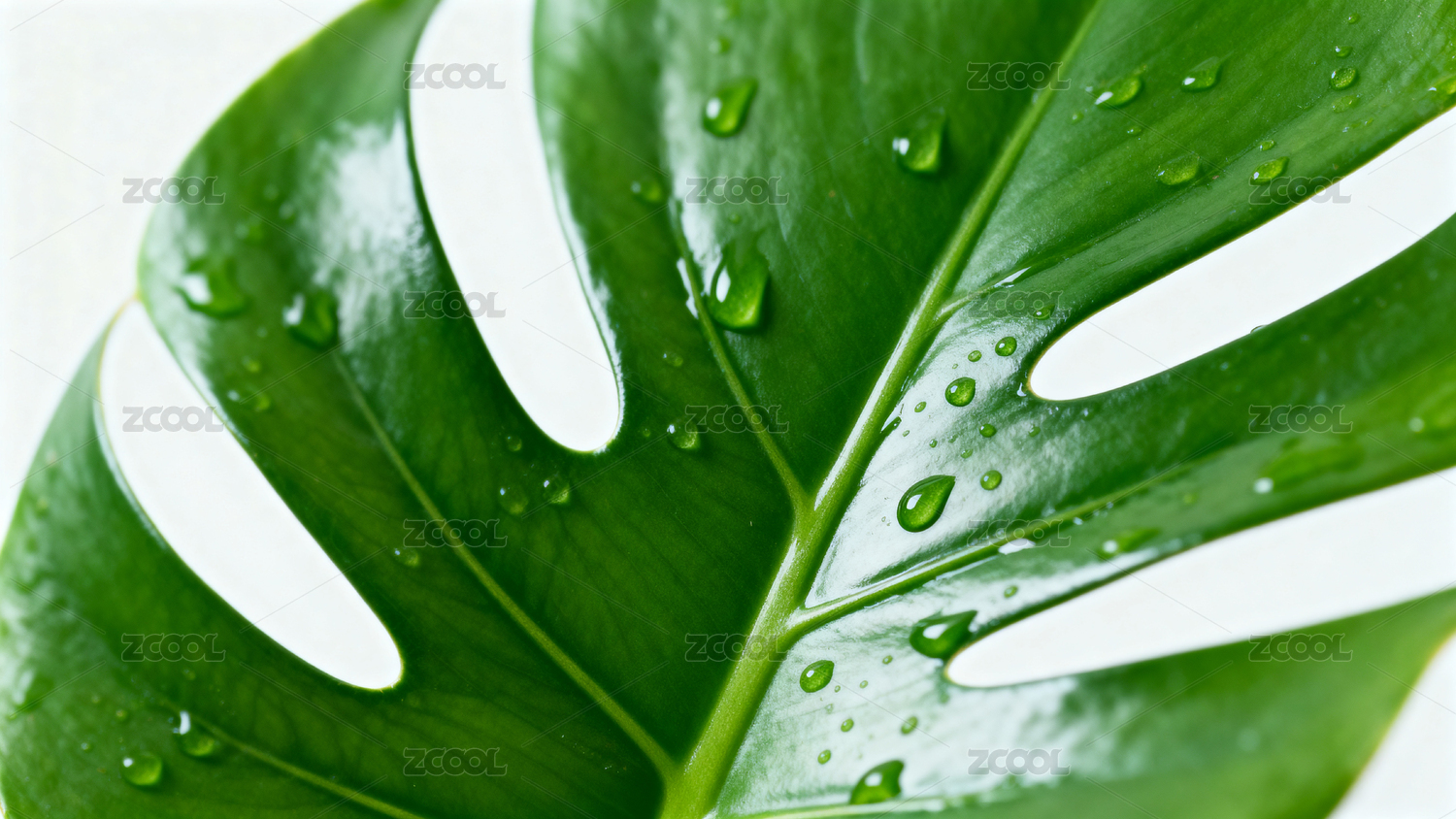 龟背竹叶片水滴特写