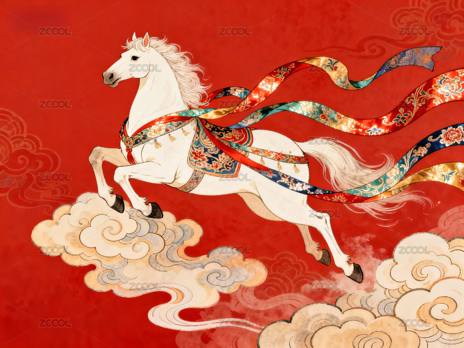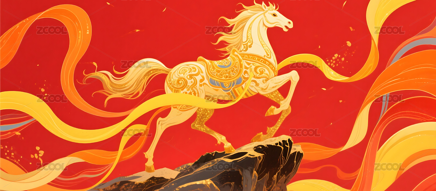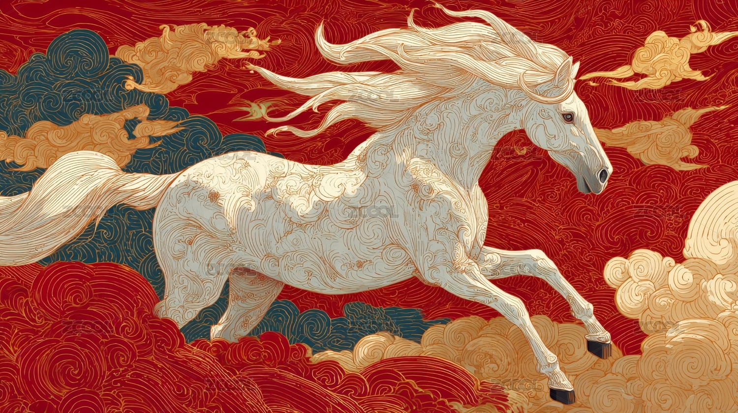 天空,金色,红色,装饰,云雾,远景,图案,流动,橙色,骏马
