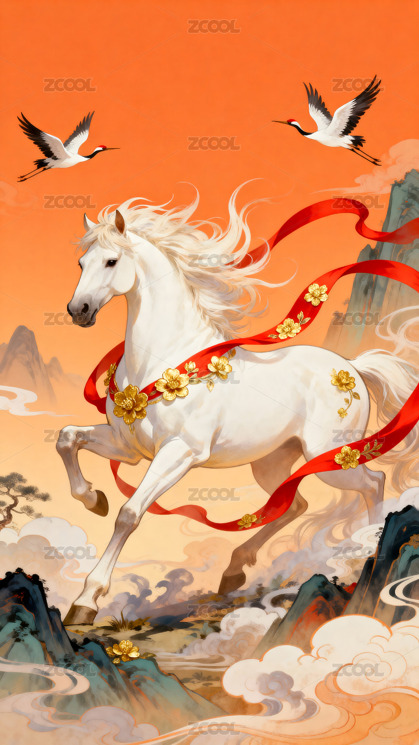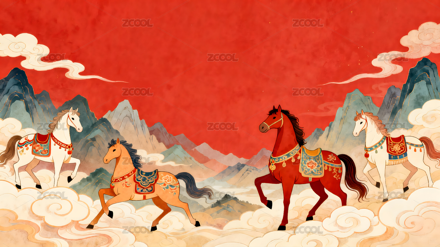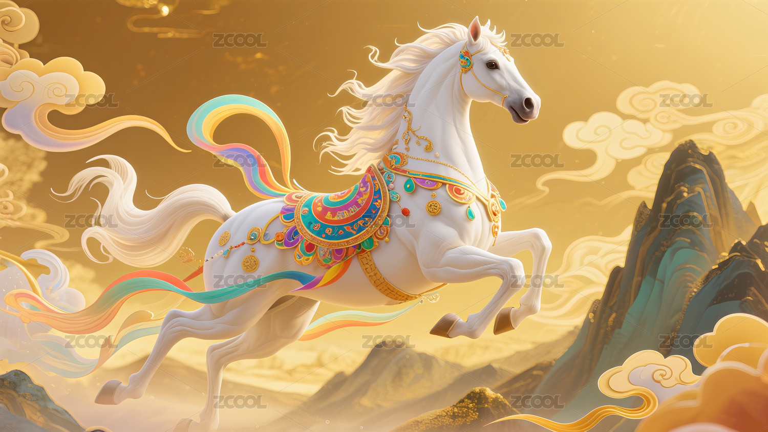 天空,金色,红色,装饰,云雾,远景,图案,流动,橙色,骏马