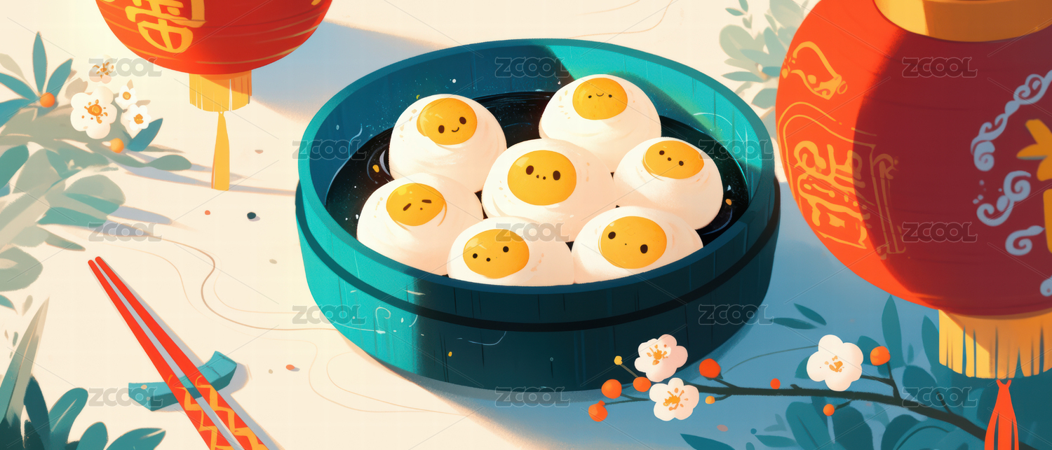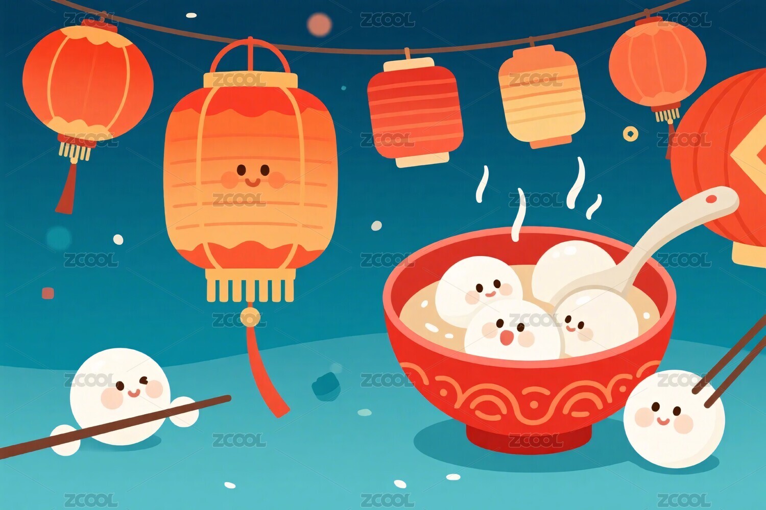 美食,背景,装饰,红色,节日,蒸汽,灯笼,汤圆,笑脸,云朵
