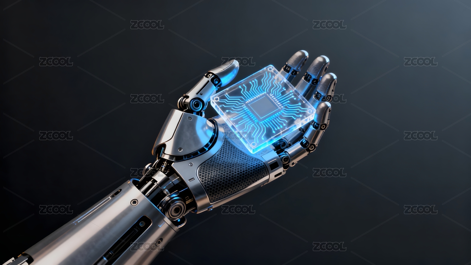 机械手与发光芯片科技感画面
