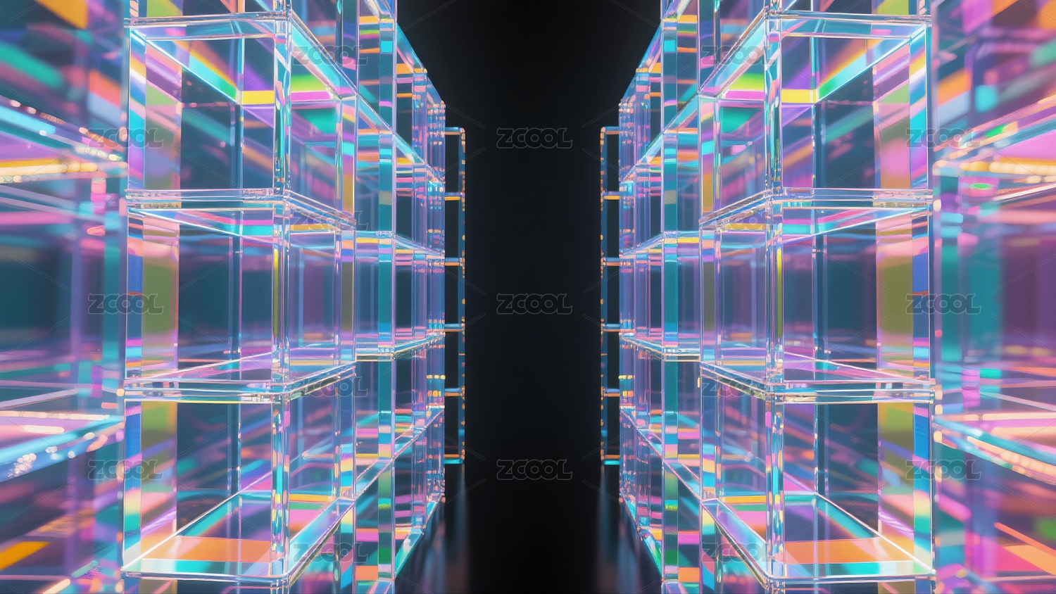 层叠排列荧光色立方体玻璃晶体3D立体插画