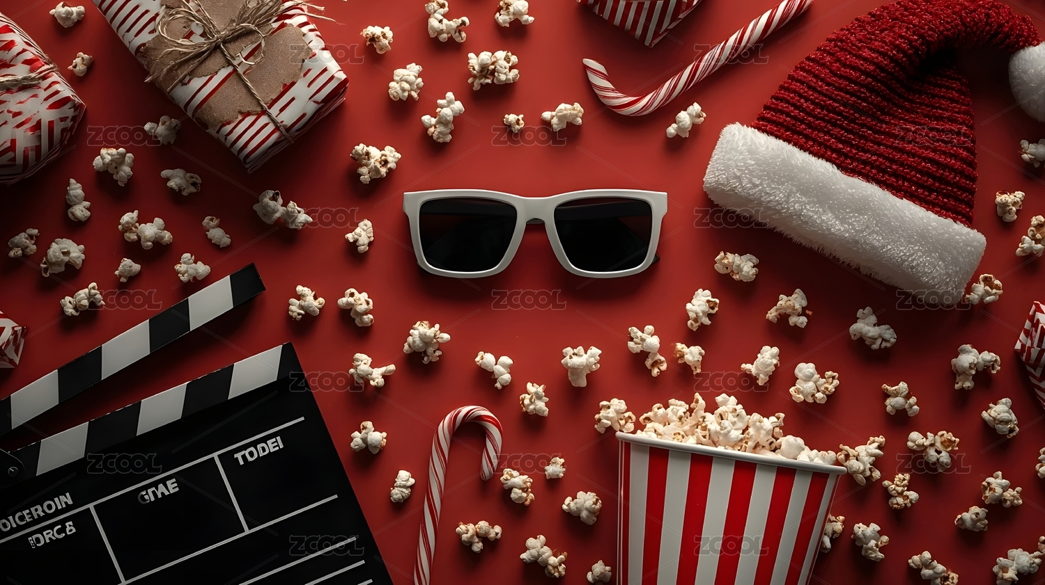 电影场记板与爆米花组合
