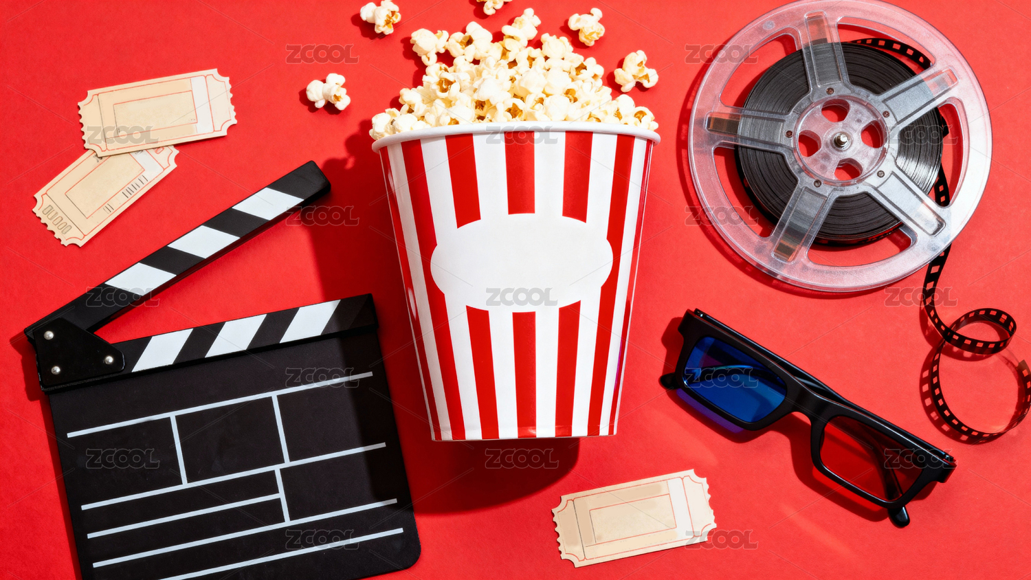 零食,爆米花,电影,场记板,3D眼镜,胶片,电影票,娱乐,休闲,观影