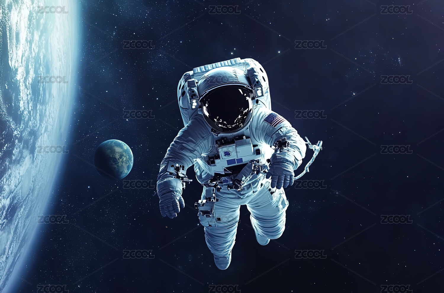宇航员太空漫步地球背景