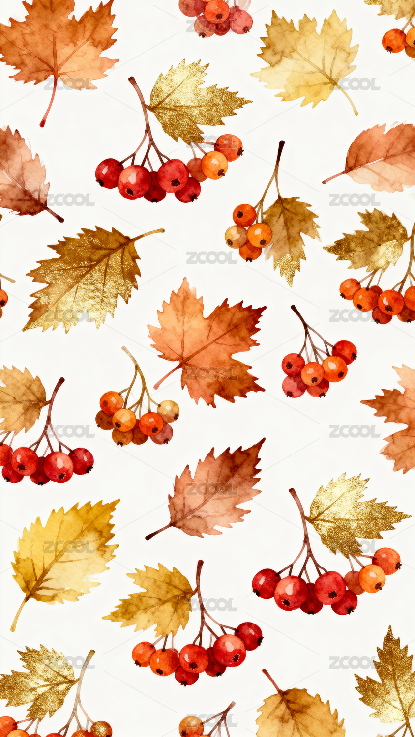 多彩秋叶与浆果图案设计