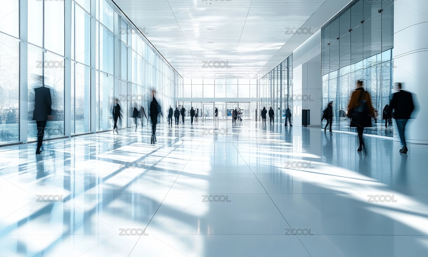 现代商务建筑写字楼走廊空间模糊人群剪影