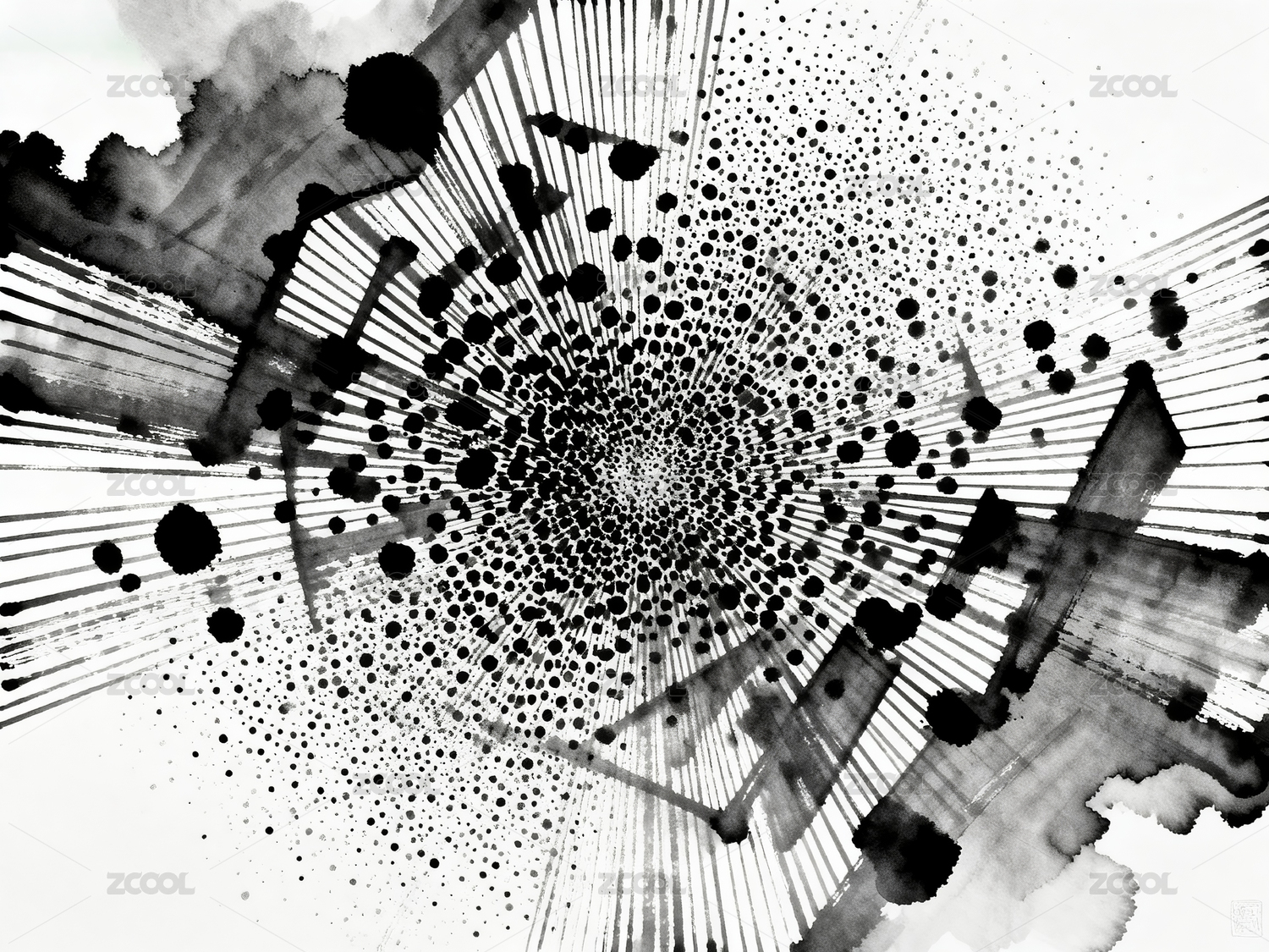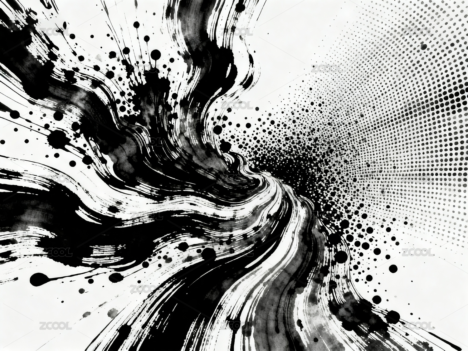 黑白的抽象墨迹笔刷泼墨艺术